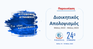 Με κεντρικό σύνθημα «ΑΥΤΟΝΟΜΑ – ΔΥΝΑΜΙΚΑ | Για νέες κατακτήσεις» ολοκληρώθηκαν με απόλυτη επιτυχία, οι εργασίες του 24ου Πανελλαδικού Συνεδρίου της Π.Ο.Ε.Π.Λ.Σ., που πραγματοποιήθηκε 14-16 Μαΐου στον Βόλο. Το 24ο Πανελλαδικό Συνέδριο, σηματοδοτεί την εξωστρέφεια που χαρακτηρίζει τη σημερινή Π.Ο.Ε.Π.Λ.Σ. καθώς αποφασίσαμε και διοργανώσαμε Πανελλαδικό Συνέδριο εκτός της έδρας της Ομοσπονδίας μας, μετά από έξι (6) χρόνια. Ένας εξίσου σημαντικός λόγος, …