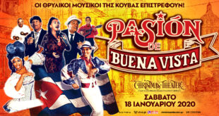 Σας γνωρίζουμε ότι με μέριμνα του Γενικού Γραμματέα, κ. Ευάγγελου Κυριαζόπουλου υπάρχει δυνατότητα δωρεάν παρακολούθησης της παράστασης ‘PASION DE BUENA VISTA’ το Σάββατο 18/01/2020 και ώρα 20.00 στο CHRISTMAS THEATER (ΚΛΕΙΣΤΟ ΟΛΥΜΠΙΑΚΟ ΣΤΑΔΙΟ ΓΑΛΑΤΣΙΟΥ (ΒΕΪΚΟΥ)) από τα στελέχη ΛΣ -ΕΛ.ΑΚΤ., τους Πολιτικούς Υπαλλήλους του ΥΝΑΝΠ καθώς και των οικογενειών τους. Παρακαλείσθε όπως γνωστοποιήσετε στο email: gg.yna@yen.gr του Γρ. κ. Γ.Γ. μέχρι την Πέμπτη 16/01/2020 και ώρα 15:00 το ονοματεπώνυμο μόνο του ενδιαφερομένου …