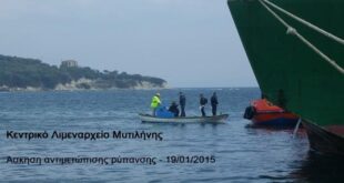 ΑΣΚΗΣΗ ΚΑΤΑΠΟΛΕΜΗΣΗΣ ΘΑΛΑΣΣΙΑΣ ΡΥΠΑΝΣΗΣ Κ. Λ .ΜΥΤΙΛΗΝΗΣ 2015 Άσκηση ετοιμότητας για την καταπολέμηση περιστατικού θαλάσσιας ρύπανσης πραγματοποίησε με απόλυτη επιτυχία το Κεντρικό Λιμεναρχείο Μυτιλήνης την 19-01-2015 σε συνεργασία με την εταιρεία διακίνησης πετρελαιοειδών BP ELLHNIKH στη Σκάλα Παμφίλων Μυτιλήνης. Σκοπός της συγκεκριμένης άσκησης είναι η καλύτερη εκπαίδευση του προσωπικού όλων των εμπλεκόμενων τοπικών αρχών στην άμεση ανάληψη των αναγκαίων ενεργειών …