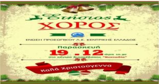 ΕΝΩΣΗ ΠΡΟΣΩΠΙΚΟΥ ΛΙΜΕΝΙΚΟΥ ΣΩΜΑΤΟΣ ΚΕΝΤΡΙΚΗΣ ΕΛΛΑΔΑΣ Σας προσκαλούμε να τιμήσετε με την παρουσία σας την Ετήσια Εορταστική Εκδήλωση της Ένωσής μας η οποία θα πραγματοποιηθεί τη ΠΑΡΑΣΚΕΥΗ 19 ΔΕΚΕΜΒΡΙΟΥ 2014 στο κέντρο ΄΄Νυχτωδία ΄΄ στο Βόλο. Ώρα προσέλευσης 22:30. Τιμή κάρτας κατ’ άτομο 20€. Στην τιμή συμπεριλαμβάνεται: Μία φιάλη ανά τέσσερα (04) άτομα . Τα έσοδα της εκδήλωσης θα διατεθούν …