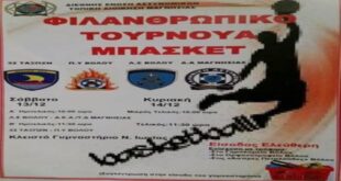ΕΝΩΣΗ ΠΡΟΣΩΠΙΚΟΥ ΛΙΜΕΝΙΚΟΥ ΣΩΜΑΤΟΣ ΚΕΝΤΡΙΚΗΣ ΕΛΛΑΔΑΣ Συμμετέχουμε ενεργά στο φιλανθρωπικό τουρνουά ΜΠΑΣΚΕΤ μεταξύ των υπηρετούντων σε Σώματα Ασφαλείας και Στρατό στο Νομό Μαγνησίας . Ο σκοπός του τουρνουά είναι φιλανθρωπικός καθώς αντί του αντιτίμου εισιτηρίου θα συγκεντρωθούν τρόφιμα που θα δοθούν : • Στο Ορφανοτροφείο Βόλου • Στο Γηροκομείο Βόλου • Στις <<Άσπρες Πεταλούδες >> Βόλου Οι Αγώνες θα διεξαγθούν …