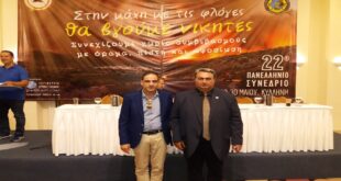 Στο συνέδριο της Πανελλήνιας Ομοσπονδίας Πυροσβεστικών Υπηρεσιών βρέθηκε σήμερα ο πρόεδρος της ΕΠΛΣ ΝΔ Ελλάδος ΚΩΣΤΑΚΗΣ Μιχαήλ εκπροσωπώντας την ΠΟΕΠΛΣ και απηύθυνε χαιρετισμό. Στην φωτογραφία με το πρόεδρο της ΠΟΕΥΠΣ ΣΤΑΘΟΠΟΥΛΟ Δημήτρη.