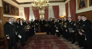 Παραδοσιακά κάλαντα και τραγούδια των Χριστουγέννων έπαιξε σήμερα η Μουσική του Λιμενικού Σώματος – Ελληνικής Ακτοφυλακής, υπό τη διεύθυνση του Αρχιμουσικού Αντιπλοιάρχου Λ.Σ. ΒΡΕΤΤΟΥ Γεωργίου, ενώ Βυζαντινά Κάλαντα και ύμνους των Χριστουγέννων έψαλλε η Βυζαντινή Χορωδία, στον Αρχιεπίσκοπο Αθηνών και Πάσης Ελλάδος κ.κ. Ιερώνυμο παρουσία του Αρχηγού του Λιμενικού Σώματος – Ελληνικής Ακτοφυλακής Αντιναυάρχου Λ.Σ. ΡΑΠΤΗ Σταματίου. Στην τελετή, η …