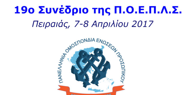 Την Παρασκευή 7 και το Σάββατο 8 Απριλίου 2017 πραγματοποιήθηκε το προαναγγελθέν 19ο Συνέδριο της Π.Ο.Ε.Π.Λ.Σ. στον Πειραιά.