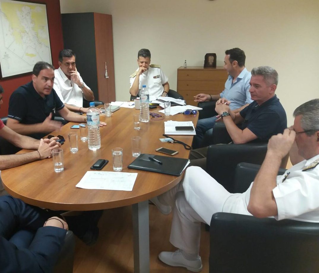 Στη σύσκεψη παραβρέθηκαν ο Αρχηγός Λ.Σ.-ΕΛ.ΑΚΤ. Αντιναύαρχος ΛΣ κ. Ράπτης Σταμάτιος, ο Α’ Υπαρχηγός Λ.Σ.-ΕΛ.ΑΚΤ. Αντιναύαρχος ΛΣ Κλιάρης Θεόδωρος, ο Κλαδάρχης Λιμενικής Αστυνομίας Υποναύαρχος ΛΣ κ. Αργυρίου Σταμάτιος και ο Διευθυντής ΔΕΜ Πλοίαρχος ΛΣ κ. Πανταζόγλου Αριστείδης.
