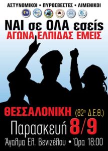 Τα ΝΑΙ ΣΕ ΟΛΑ ΤΩΝ ΚΥΒΕΡΝΟΝΤΩΝ επιβάλλουν τη δυναμική παρουσία στην πανελλαδική ένστολη συγκέντρωση διαμαρτυρίας στις 8 Σεπτέμβρη 2017 ημέρα Παρασκευή και ώρα 18:00 στο άγαλμα του ΕΛ. ΒΕΝΙΖΕΛΟΥ (Πλ. Δικαστηρίων) στη Θεσσαλονίκη, ώστε να στείλουμε βροντερό μήνυμα από όλη την Ελλάδα στον Πρωθυπουργό της Χώρας, ενόψει και των εξαγγελιών του στην 82η Διεθνή Έκθεση.