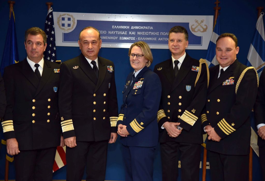 Η Υπαρχηγός Επιχειρήσεων συνοδευόταν από επιτελικά στελέχη της Αμερικανικής Ακτοφυλακής, διπλωματικό στέλεχος της Πρεσβείας των Η.Π.Α. στην Αθήνα, καθώς και από τον Πρόεδρο του Propeller Club, ενώ από το Λιμενικό Σώμα-Ελληνική Ακτοφυλακή στη συνάντηση παρέστησαν επίσης ο Α΄ Υπαρχηγός του Λ.Σ.-ΕΛ.ΑΚΤ. Αντιναύαρχος Λ.Σ. Θεόδωρος Κλιάρης, o Β΄ Υπαρχηγός Λ.Σ.-ΕΛ.ΑΚΤ. Αντιναύαρχος Λ.Σ. Παναγιώτης Παρασκευάς, o Γενικός Επιθεωρητής του Λιμενικού Σώματος – Ελληνικής Ακτοφυλακής Υποναύαρχος Λ.Σ. Αθανάσιος ΝΤΟΥΝΗΣ, επιτελικά στελέχη του ΛΣ-ΕΛ.ΑΚΤ. καθώς και στελέχη του Γρ. κ ΥΝΑΝΠ.