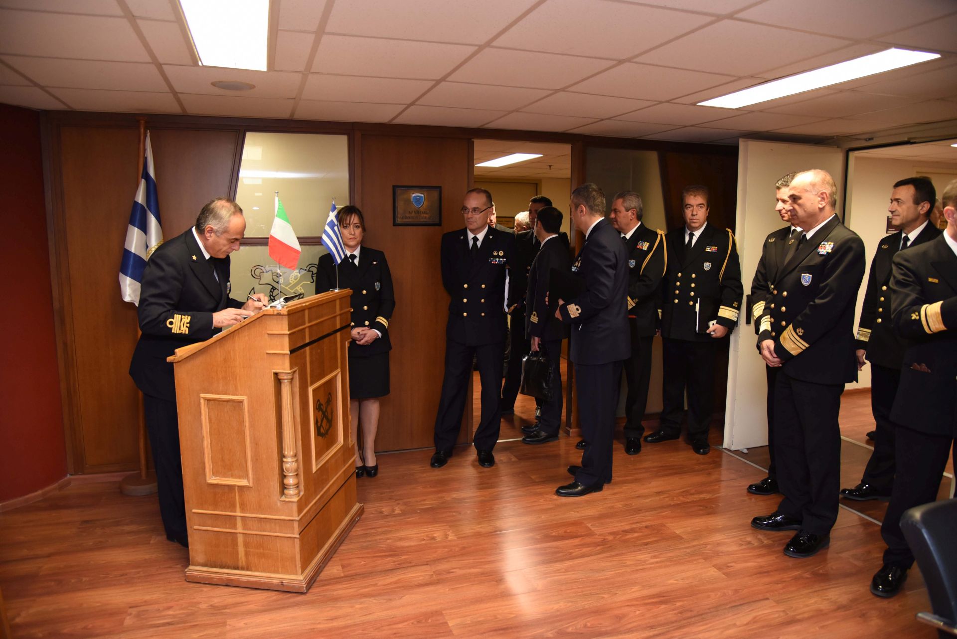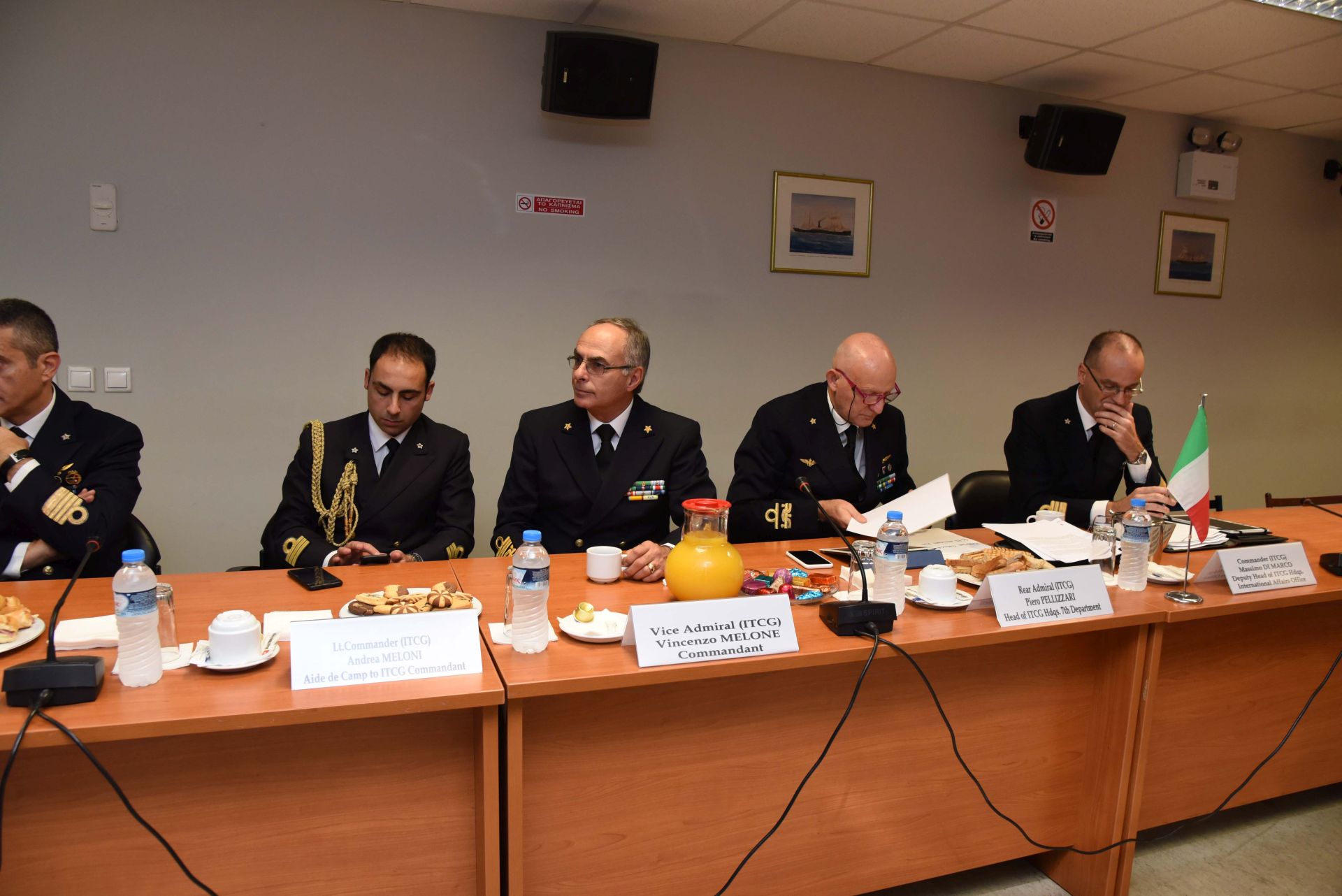 Ο Αρχηγός συνοδευόταν από επιτελικά στελέχη της Ιταλικής Ακτοφυλακής, ενώ από το Λιμενικό Σώμα – Ελληνική Ακτοφυλακή στη συνάντηση παρέστησαν επίσης ο Α΄ Υπαρχηγός του Λ.Σ.-ΕΛ.ΑΚΤ. Αντιναύαρχος Λ.Σ. Θεόδωρος ΚΛΙΑΡΗΣ, o Β΄ Υπαρχηγός Λ.Σ.-ΕΛ.ΑΚΤ. Αντιναύαρχος Λ.Σ. Παναγιώτης ΠΑΡΑΣΚΕΥΑΣ, o Γενικός Επιθεωρητής του Λιμενικού Σώματος – Ελληνικής Ακτοφυλακής Υποναύαρχος Λ.Σ. Αθανάσιος ΝΤΟΥΝΗΣ και επιτελικά στελέχη του Λ.Σ-ΕΛ.ΑΚΤ.