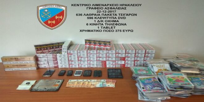 Για κατοχή λαθραίων καπνικών προϊόντων, συνελήφθησαν δύο (02) αλλοδαποί ηλικίας 30 και 31 ετών καθώς και ένας 66χρονος ημεδαπός, πρωινές ώρες σήμερα, στο Ηράκλειο, από στελέχη του γραφείου Ασφάλειας της οικείας Λιμενικής Αρχής.