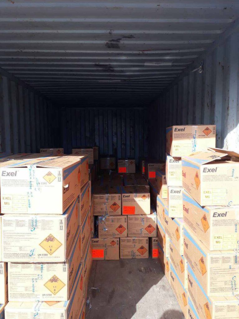 Αφού εκφορτώθηκε το σύνολο του φορτίου, διενεργήθηκε έλεγχος από τον οποίο επιβεβαιώθηκε το περιεχόμενο των 29 εμπορευματοκιβωτίων (εκρηκτικές ύλες – πυροκροτητές και λοιπός εξοπλισμός αυτών), διασταυρούμενο με τα αναγραφόμενα στα δηλωτικά και συνοδευτικά έγγραφα του φορτίου. Ομοίως επιβεβαιώθηκε ότι, οι 11 δεξαμενές υγραερίου ήταν κενές φορτίου.