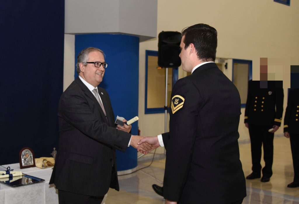 Πραγματοποιήθηκε σήμερα, στο Αρχηγείο του Λιμενικού Σώματος – Ελληνικής Ακτοφυλακής, με την παρουσία του Υφυπουργού Ναυτιλίας και Νησιωτικής Πολιτικής κ. Νεκτάριου Σαντορινιού, του Γενικού Γραμματέα του Υπουργείου Ναυτιλίας και Νησιωτικής Πολιτικής κ. Διονύσιου-Χαράλαμπου Καλαματιανού, του Αρχηγού Λιμενικού Σώματος – Ελληνικής Ακτοφυλακής Αντιναυάρχου Λ.Σ. ΡΑΠΤΗ Σταμάτιου, του Εφέτη Ειδικού Ανακριτή κ. Νικόπουλου Ευτύχιου, της Προϊσταμένης της Εισαγγελίας Πειραιά κας Τζίβα Ειρήνης, η τελετή απονομής πτυχίων σε αποφοιτούντα στελέχη Λιμενικού Σώματος – Ελληνικής Ακτοφυλακής στο πλαίσιο ολοκλήρωσης του 5ου Σχολείου Δίωξης Ναρκωτικών Λ.Σ. (Σ.ΔΙ.Ν.Λ.Σ.), το οποίο διοργανώθηκε με μέριμνα και υπό την εποπτεία της Διεύθυνσης Δίωξης Ναρκωτικών και Λαθρεμπορίου.