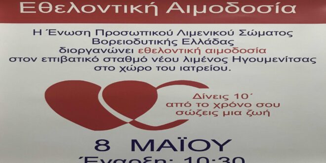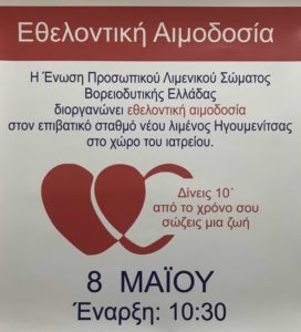 ΕΘΕΛΟΝΤΙΚΗ ΑΙΜΟΔΟΣΙΑ ΤΗΣ ΕΠΛΣ/ΒΔΕ την 08/05/2018 και ώρα 10:30 π.μ. στον Επιβατικό Σταθμό Τ1 του Λιμένα Εξωτερικού Ηγουμενίτσας.