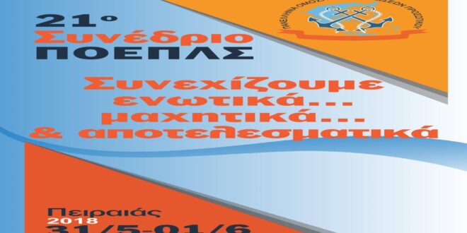 Την Πέμπτη 31 Μαΐου και την Παρασκευή 01 Ιουνίου 2018 πραγματοποιήθηκε στον Πειραιά το 21ο Τακτικό Συνέδριο της Π.Ο.Ε.Π.Λ.Σ.