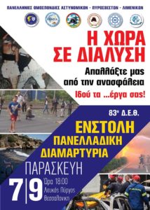 Συμμετοχή της Π.Ο.Ε.Π.Λ.Σ. στην Ένστολη Πανελλαδική Διαμαρτυρία Ομοσπονδιών & Ενώσεων Σωμάτων Ασφαλείας στην Θεσσαλονίκη στο πλαίσιο της Δ.Ε.Θ., στις 07 Σεπτεμβρίου 2018 και ώρα 18:00 στον Λευκό Πύργο.