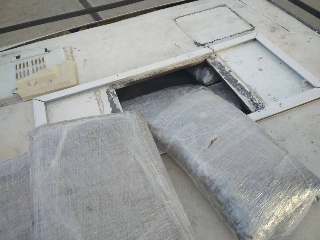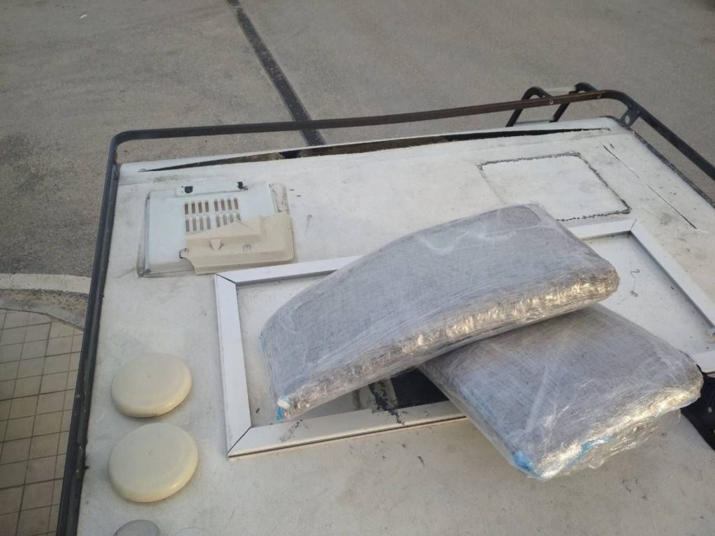 Συγκεκριμένα, κατά τον έλεγχο που διενεργήθηκε στην πύλη εισόδου οχημάτων του νότιου λιμένα Πατρών, από στελέχη της Περιφερειακής Ομάδας Δίωξης Ναρκωτικών, του Κλιμακίου Ειδικών Αποστολών και του Γραφείου Ασφαλείας του Κεντρικού Λιμεναρχείου Πάτρας, με τη συνδρομή ειδικού οχήματος ανίχνευσης με ακτίνες Χ σε αυτοκινούμενο τροχόσπιτο,εντοπίστηκαν επιμελώς κρυμμένες καθ’ όλο το μήκος της οροφής του και συγκεκριμένα σε ειδικά διαμορφωμένη κρύπτη – υπερκατασκευή, πενήντα εννέα (59) αεροστεγείς πλαστικές συσκευασίες, οι οποίες περιείχαν φυτικά αποσπάσματα ακατέργαστης κάνναβης συνολικού μικτού βάρους τετρακοσίων είκοσι κιλών (420kg).