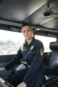 Τρία χρόνια τώρα, πρώτα στο ΠΛΣ 610 και τώρα στο ΠΛΣ 602 με τη βαριά ιστορία, η δουλειά της είναι να σώζει ανθρώπους. Απόφοιτος της Ακαδημίας Εμπορικού Ναυτικού της Πρέβεζας, έμαθε για τις θέσεις στο Λιμενικό Σώμα ένα πρωί, ταξιδεύοντας, 24 χρονών κοριτσάκι, με ένα γκαζάδικο στη βόρεια Ρωσία! Επέστρεψε, έκανε τα χαρτιά της και βρέθηκε στο Λιμενικό Σώμα.