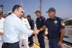 Ο υπουργός τόνισε πως, στις άμεσες προτεραιότητες του υπουργείου Ναυτιλίας είναι πρώτα και πάνω από όλα η ενίσχυση της οργανικής δύναμης του Λιμενικού Σώματος, η ενίσχυση με επιχειρησιακά μέσα ολόκληρης της 7ης περιφερειακής διοίκησης του Λιμενικού Σώματος και η συνεχής εκπαίδευση του προσωπικού, η οποία προγραμματίζεται μάλιστα, μέσα στο φθινόπωρο.