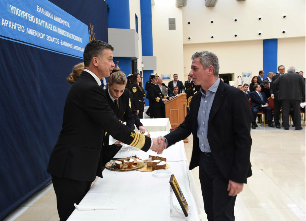Ο Υπουργός Ναυτιλίας & Νησιωτικής Πολιτικής κ. Γιάννης Πλακιωτάκης στο χαιρετισμό του μεταξύ άλλων τόνισε: «για μία ακόμη φορά, να ευχαριστήσω δημοσίως τους άνδρες και τις γυναίκες του Λιμενικού Σώματος, που νύχτα – μέρα, επί 24ωρου βάσεως, σώζουν ανθρώπινες ζωές στη θάλασσα, ενώ την ίδια ώρα κάποιοι άλλοι διακινδυνεύουν για να προστατεύσουν τα θαλάσσια σύνορα της πατρίδας μας».
