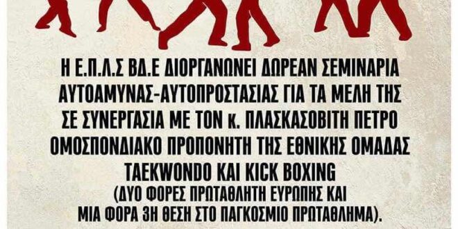 Διοργάνωση από την Ε.Π.Λ.Σ. Βορειοδυτικής Ελλάδας σεμιναρίων ΑΥΤΟΑΜΥΝΑΣ – ΑΥΤΟΠΡΟΣΤΑΣΙΑΣ