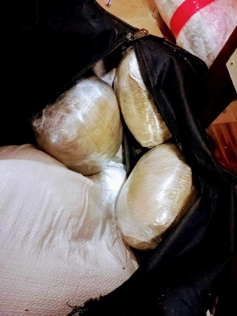 είκοσι (20) σάκοι ταξιδίου και οκτώ (08) διαφόρων τύπων συσκευασιών εντός των οποίων είχαν τοποθετηθεί πεντακόσια ενενήντα έξι δέματα (596) περιέχοντα ποσότητα κατεργασμένης κάνναβης μεικτού βάρους οκτακοσίων δέκα κιλών και τριακοσίων πενήντα γραμμαρίων (810,350kg).