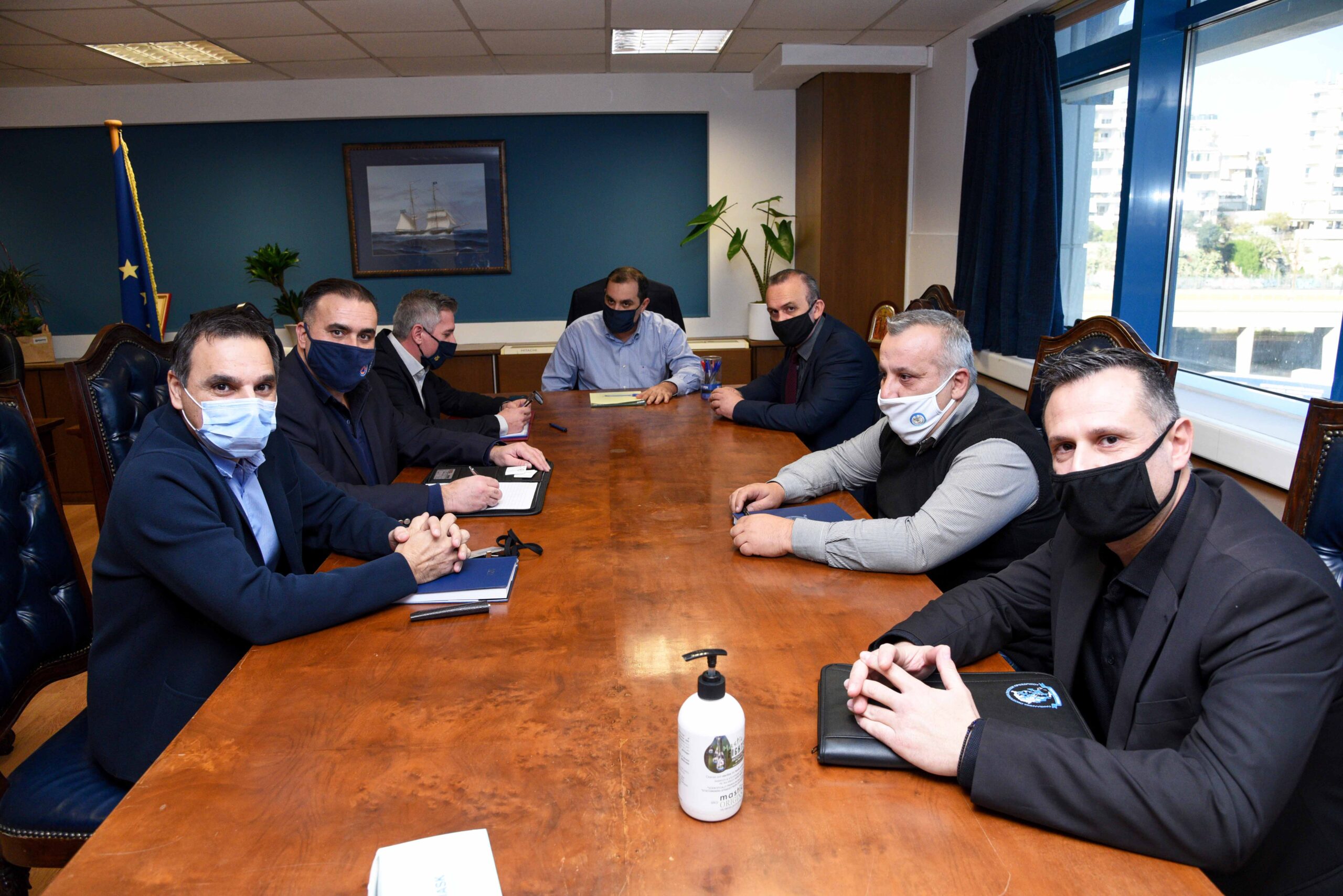 Με τον Υφυπουργό Ναυτιλίας & Νησιωτικής Πολιτικής κ. Κατσαφάδο Κώστα συναντήθηκε σήμερα η Ομοσπονδία μας. Κατά τη συνάντηση συζητήθηκαν και αναλύθηκαν τα ζητήματα, που αφορούν στα στελέχη του Λ.Σ.-ΕΛ.ΑΚΤ. και είχαμε την ευκαιρία να θέσουμε σειρά συγκεκριμένων θεμάτων ζητώντας από τον κ. Υφυπουργό να συμβάλει στην επίλυσή τους.
