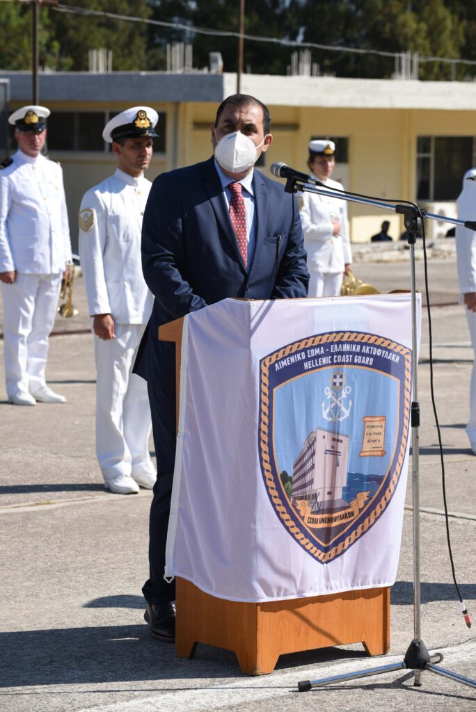 Στην τελετή, που έλαβε χώρα στις εγκαταστάσεις της Σχολής Μονίμων Υπαξιωματικών Ναυτικού (ΣΜΥΝ), στο Ναυτικό Οχυρό Σκαραμαγκά, παρέστησαν ο Υφυπουργός Ναυτιλίας και Νησιωτικής Πολιτικής κ. Κώστας Κατσαφάδος, ο Αρχηγός Λ.Σ.-ΕΛ.ΑΚΤ. Αντιναυάρχος Λ.Σ. Κλιάρης Θεόδωρος, ο Β’ Υπαρχηγός Λ.Σ.-ΕΛ.ΑΚΤ. Αντιναύαρχος Λ.Σ. Αλεξανδράκης Γεώργιος, ο Γενικός Επιθεωρητής Λ.Σ.-ΕΛ.ΑΚΤ. Υποναύαρχος Λ.Σ. Καραγεώργος Γεώργιος, ο Πρόεδρος της Πανελλήνιας Ομοσπονδίας Ενώσεων Προσωπικού Λιμενικού Σώματος (Π.Ο.Ε.Π.Λ.Σ.) Τσιάνος Παναγιώτης και ο Πρόεδρος της Ένωσης Προσωπικού Λιμενικού Σώματος Αττικής, Πειραιά και Νήσων – Αντιπρόεδρος Α΄ της Π.Ο.Ε.Π.Λ.Σ. Κουζής Βασίλειος.