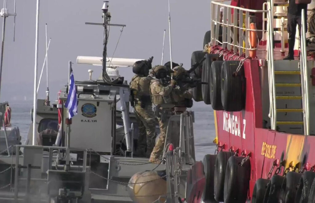Την επίδειξη, που είχε ως θέμα την ανακατάληψη πλοίου το οποίο έχει δεχτεί τρομοκρατική επίθεση, παρακολούθησαν ο Υπουργός Ναυτιλίας & Νησιωτικής Πολιτικής κ. Γιάννης Πλακιωτάκης, ο Υφυπουργός Ναυτιλίας & Νησιωτικής Πολιτικής κ. Κώστας Κατσαφάδος και ο Αρχηγός Λιμενικού Σώματος – Ελληνικής Ακτοφυλακής Αντιναύαρχος Λ.Σ. Θεόδωρος Κλιάρης.