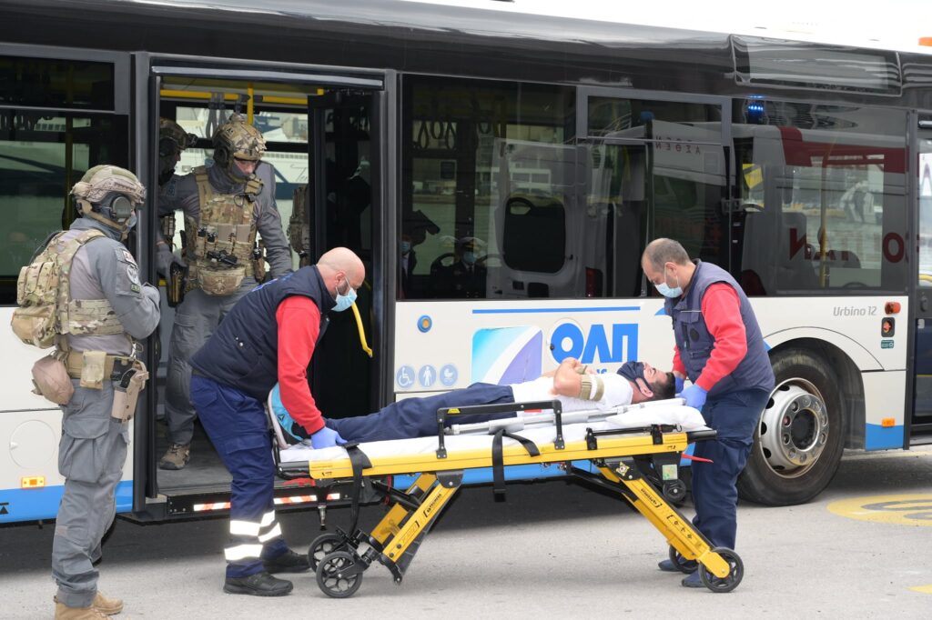 - Πρώτο σενάριο, εξουδετέρωση πειρατείας σε λεωφορείο.