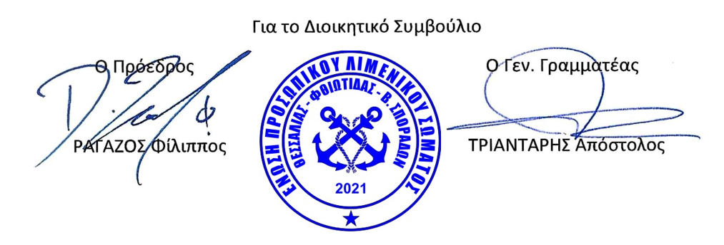 Θέμα: «Ίδρυση Σωματείου ΕΝΩΣΗ ΠΡΟΣΩΠΙΚΟΥ ΛΙΜΕΝΙΚΟΥ ΣΩΜΑΤΟΣ ΘΕΣΣΑΛΙΑΣ, ΦΘΙΩΤΙΔΑΣ ΚΑΙ ΒΟΡΕΙΩΝ ΣΠΟΡΑΔΩΝ»