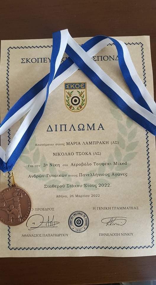 Την Κυριακή 27.03.2022 διεξήχθη στο Εθνικό σκοπευτήριο του Βύρωνα το πανελλήνιο πρωτάθλημα σταθερού στόχου στο αεροβόλο τουφέκι mixed ανδρών και γυναικών.