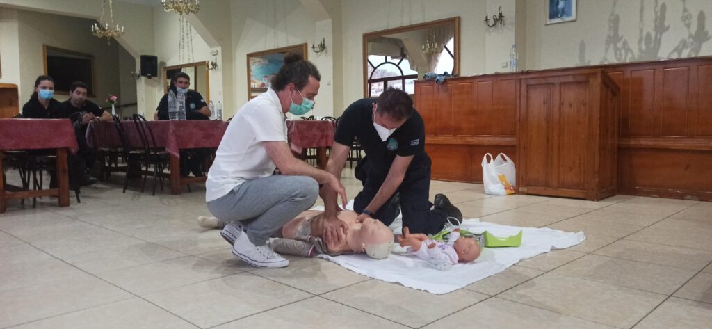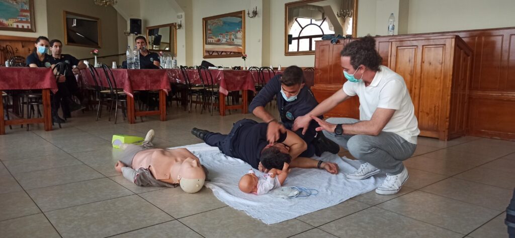 Ο κ. Κυπραίος παρουσίασε αναλυτικά τις τεχνικές αντιμετώπισης περιστατικών καρδιοπνευμονικής ανακοπής και λιποθυμίας και στη συνέχεια καθοδήγησε τα στελέχη του Λιμεναρχείου σε πρακτική εξάσκηση που έγινε με τη χρήση ομοιομάτων ενήλικα και βρέφους.