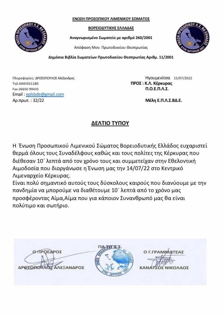 Εθελοντική αιμοδοσία στην Κέρκυρα