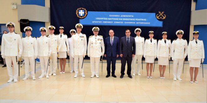 Παρουσία του Υπουργού Ναυτιλίας και Νησιωτικής Πολιτικής κ. Γιάννη Πλακιωτάκη, του Υφυπουργού Ναυτιλίας και Νησιωτικής Πολιτικής κ. Κώστα Κατσαφάδου και του Αρχηγού του Λιμενικού Σώματος – Ελληνικής Ακτοφυλακής Αντιναυάρχου Λ.Σ. Αλεξανδράκη Γεώργιου, πραγματοποιήθηκε χθες η τελετή αποφοίτησης δέκα (10) Αξιωματικών Λιμενικού Σώματος – Ελληνικής Ακτοφυλακής, απευθείας κατάταξης, ειδικότητας Τεχνικού και ενός (01) Αξιωματικού Λιμενικού Σώματος – Ελληνικής Ακτοφυλακής, απευθείας κατάταξης, ειδικότητας Υγειονομικού.