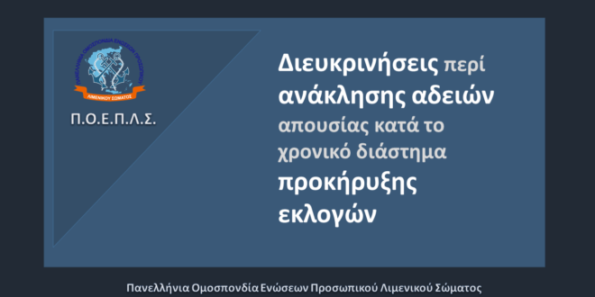 Ως εκ τούτου, λοιπές άδειες (ΕΚΤΟΣ ΚΑΝΟΝΙΚΗΣ ΑΔΕΙΑΣ ΑΠΟΥΣΙΑΣ) που προβλέπονται στο ΠΔ 80/2015, χορηγούνται κατά το χρονικό διάστημα προεκλογικής περιόδου υπό την τήρηση των προϋποθέσεων που θέτουν οι οικείες διατάξεις.