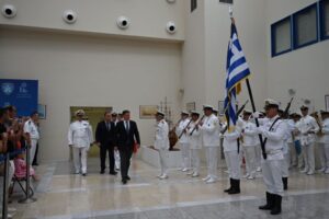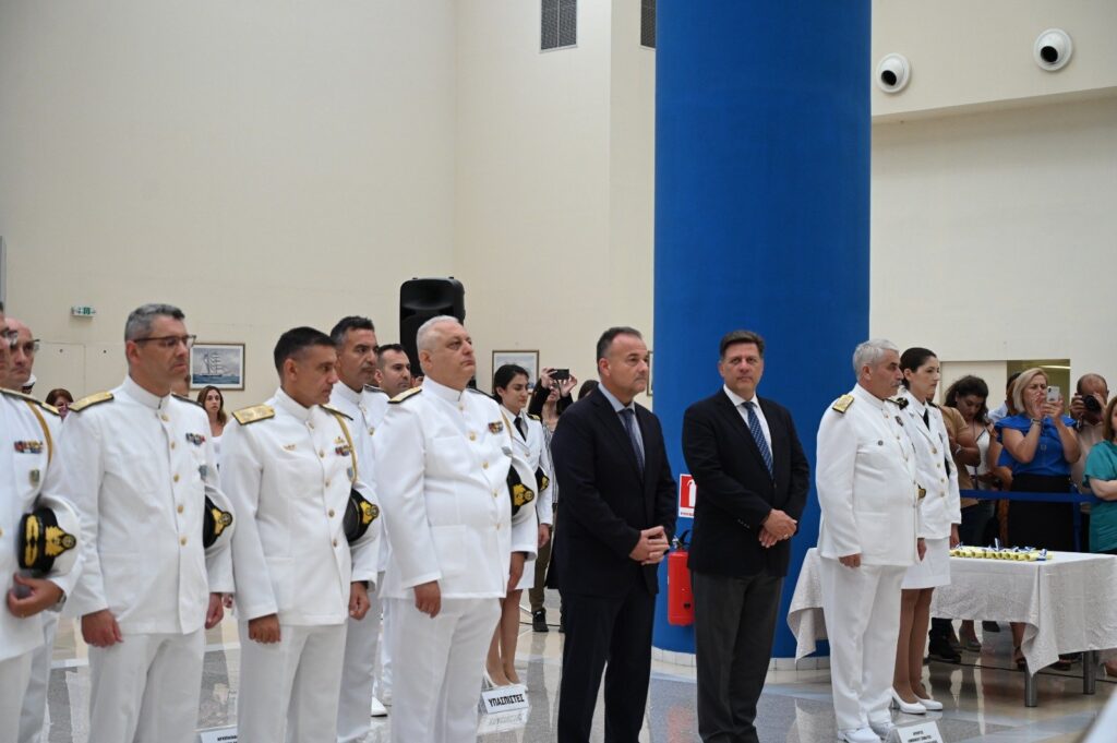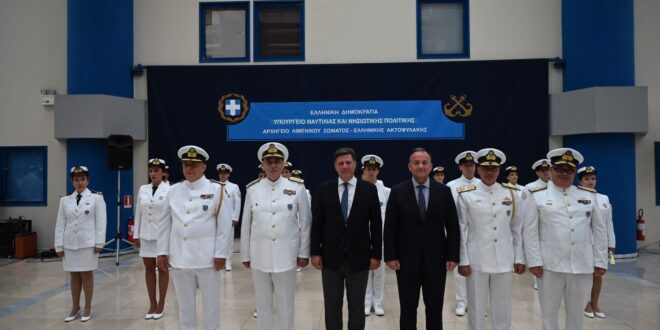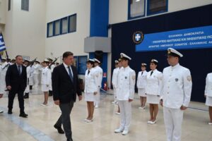 Τελετή ορκωμοσίας δεκατεσσάρων (14) Υπαξιωματικών Λιμενικού Σώματος – Ελληνικής Ακτοφυλακής, απευθείας κατάταξης, ειδικότητας Υγειονομικού παρουσία του Υπουργού Ναυτιλίας και Νησιωτικής Πολιτικής, Μιλτιάδη Βαρβιτσιώτη, του Υφυπουργού Ναυτιλίας και Νησιωτικής Πολιτικής Ιωάννη Παππά καθώς και του Αρχηγού του Λιμενικού Σώματος – Ελληνικής Ακτοφυλακής, Αντιναυάρχου Λ.Σ. Γεώργιου Αλεξανδράκη, πραγματοποιήθηκε σήμερα στον αίθριο χώρο του κτιρίου Υ.ΝΑ.Ν.Π..