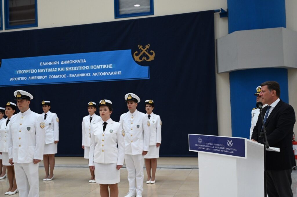 «Σεβαστέ Πατέρα, Κύριε Υφυπουργέ , αγαπητέ φίλε Γιάννη Παππά, Κύριε Αρχηγέ, Κύριοι Επιτελείς, νέοι και νέες Υπαξιωματικοί του Λιμενικού Σώματος με την ειδικότητα του υγειονομικού, θέλω να σας συγχαρώ για την επιλογή σας να καταταγείτε στο Λιμενικό Σώμα Ελληνική Ακτοφυλακή. Από σήμερα αποτελείται μέρος της μεγάλης αυτής οικογένειας η οποία έχει μία εκατοντάχρονη διαδρομή και έχει κερδίσει την εμπιστοσύνη του ελληνικού λαού. Γιατί στο πρόσωπο κάθε λιμενοφύλακα, κάθε στελέχους του Λιμενικού Σώματος βλέπει τρία πράγματα. Έναν άοκνο φρουρό των συνόρων της χώρας μας, των θαλάσσιων συνόρων της χώρας μας, έναν συμπαραστάτη σε κάθε νησιώτη, σε κάθε ταξιδιώτη, σε κάθε έναν που προβληματίζεται σε κάθε κάποιο λιμάνι και ένα στέλεχος το οποίο υπηρετεί ίσως το πιο ανταγωνιστικό κομμάτι της ελληνικής οικονομίας με τη μεγαλύτερη ιστορική διαδρομή κι αυτό είναι της ελληνικής ναυτιλίας. Αυτό ξεχωρίζει το Λιμενικό Σώμα από όλα τα άλλα ένοπλα και ένστολα σώματα. Το ότι έχει μία τριπλή αποστολή. Γι αυτό και σήμερα αισθάνομαι ιδιαίτερη χαρά που καλύπτεται ένα μεγάλο μέρος, με την δικιά σας ορκωμοσία, των θέσεων που προβλέπονται από τον οργανισμό του Λιμενικού Σώματος σε ό,τι αφορά τις ειδικότητες του υγειονομικού. Γιατί πάντοτε θεωρούσαμε ότι αυτή η αποστολή του Λιμενικού Σώματος δεν μπορεί να γίνει χωρίς να υπάρχουν οι απαραίτητες προβλέψεις στήριξης του προσωπικού μέσα από την υγειονομική κάλυψη και περίθαλψη, αλλά βέβαια και με την παροχή των σύγχρονων και κατάλληλων μέσων για την επίτευξη του σκοπού για το οποίο όλοι αισθανόμαστε περήφανοι ως μέρος της ιστορίας του και υπηρετώντας τους στόχους του. Σήμερα λοιπόν εσείς θα κληθείτε να υπηρετήσετε κι έναν ακόμη στόχο, το στόχο τον οποίο υπηρετούν πολλές φορές οι άντρες και γυναίκες του Λιμενικού στη θάλασσα κι αυτός είναι της προστασίας της ανθρώπινης ζωής. Ελπίζω να μη χρειαστεί να το κάνετε στην θάλασσα αλλά σίγουρα θα χρειαστεί να το κάνετε από την δικιά σας μάχιμη θέση εκεί όπου θα τοποθετηθείτε και εκεί που προβλέπεται. Θέλω με την ευκαιρία να συγχαρώ την Διοικητή του σχολείου εκπαίδευσης των Υπαξιωματικών και βέβαια να συγχαρώ και όλους τους καθηγητές και όλο το προσωπικό που συνέδραμε στην ολοκλήρωση με επιτυχία αυτού του κύκλου εκπαίδευσης και βέβαια να πω στους γονείς σας και του συγγενείς σας και τους συντρόφους που σας καμαρώνουν ενδεχομένως και στα παιδιά σας που σας καμαρώνουν εδώ, ότι είναι δικαιολογημένα περήφανοι για σας όσο περήφανοι είμαστε κι εμείς για σας, που από σήμερα θα φέρετε τον τίτλο του Υπαξιωματικού του Λιμενικού Σώματος. Καλώς ήρθατε λοιπόν στην μεγάλη οικογένεια του Λιμενικού Σώματος – Ελληνικής Ακτοφυλακής».