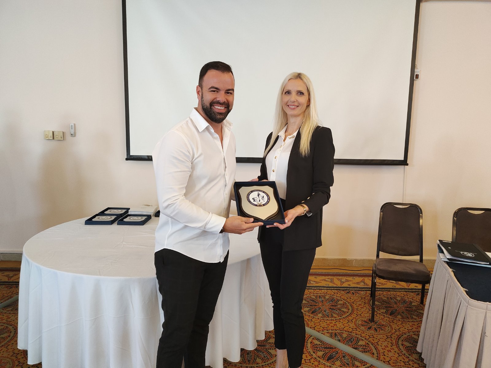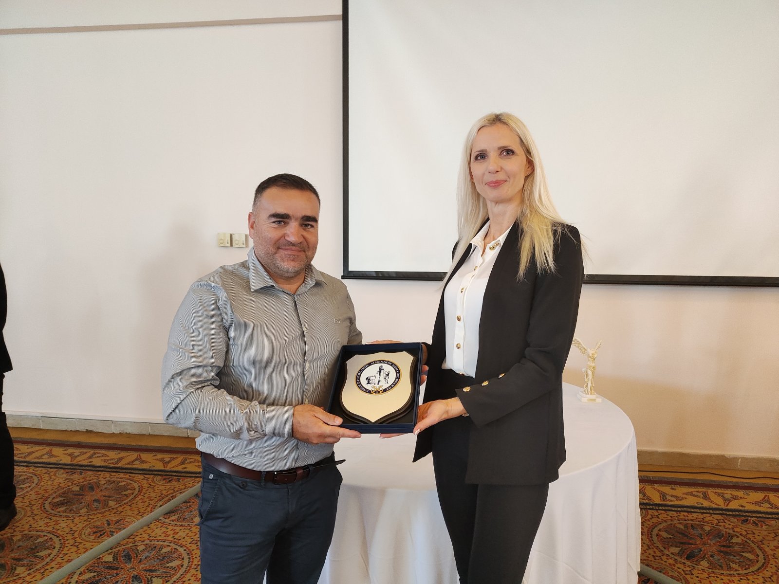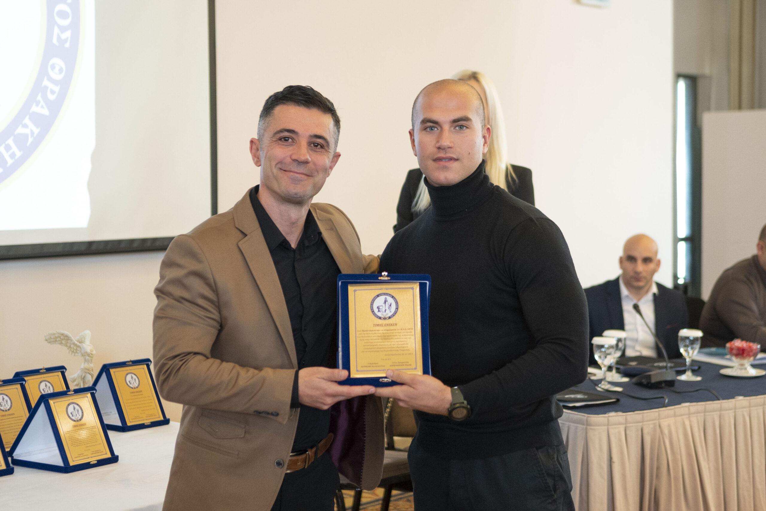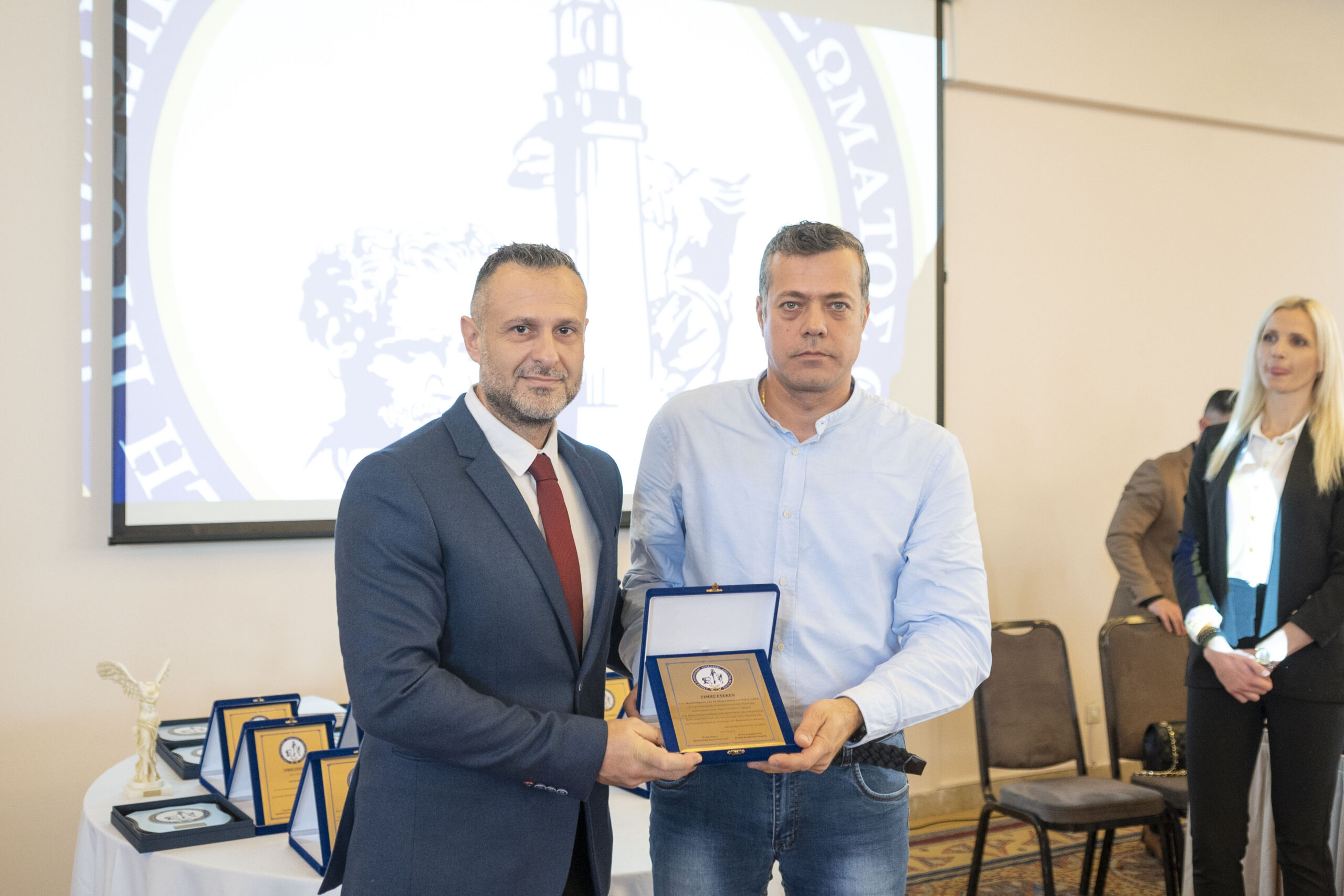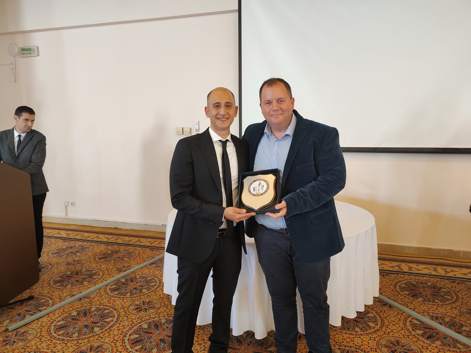Την πλακέτα παρέλαβε ο κ. Πέτροβιτς Θεόδωρος από τον Αντιπρόεδρο τη Ε.Π.Λ.Σ. Θράκης κ. Βαζούρα Ιωάννη.