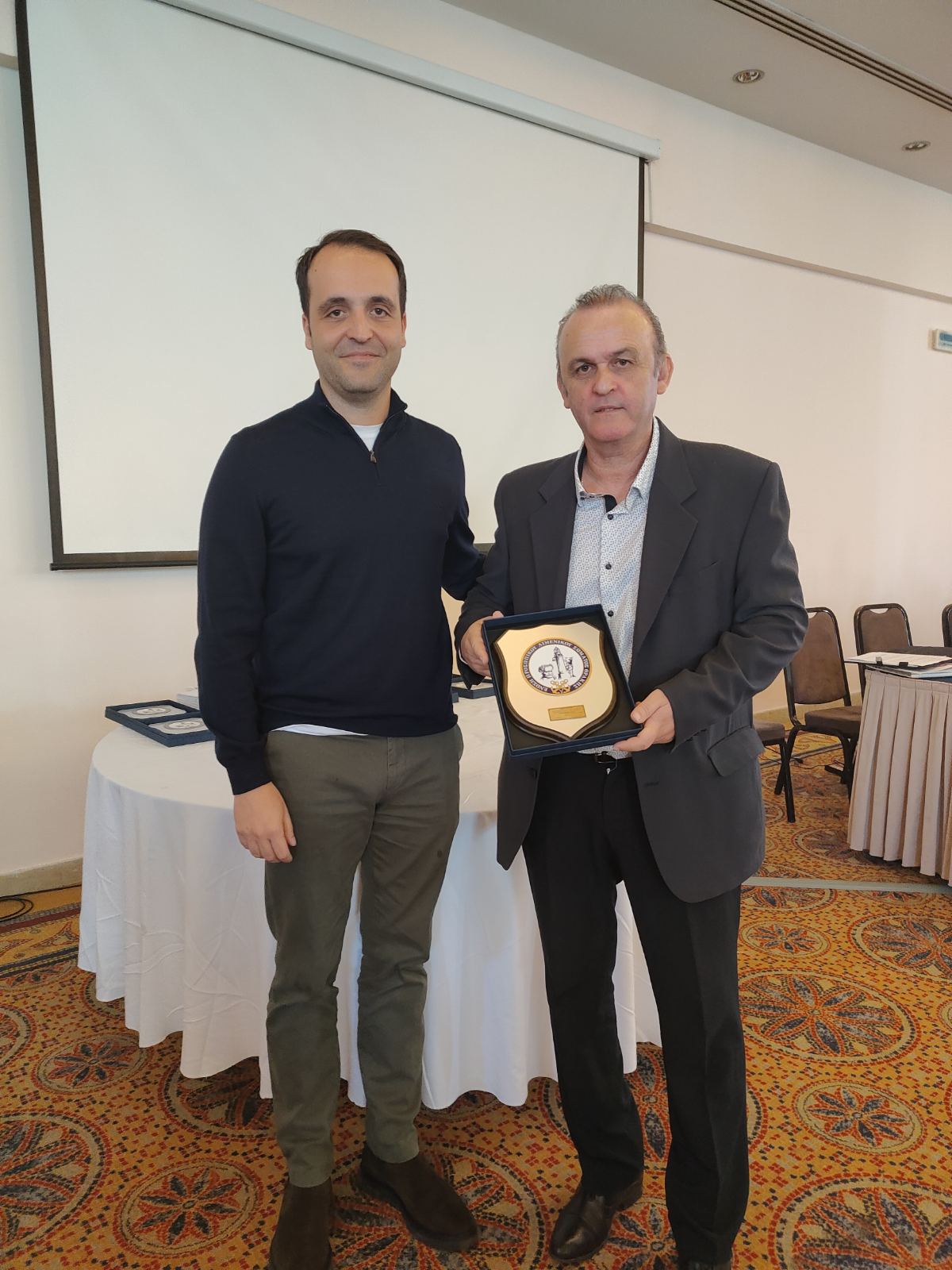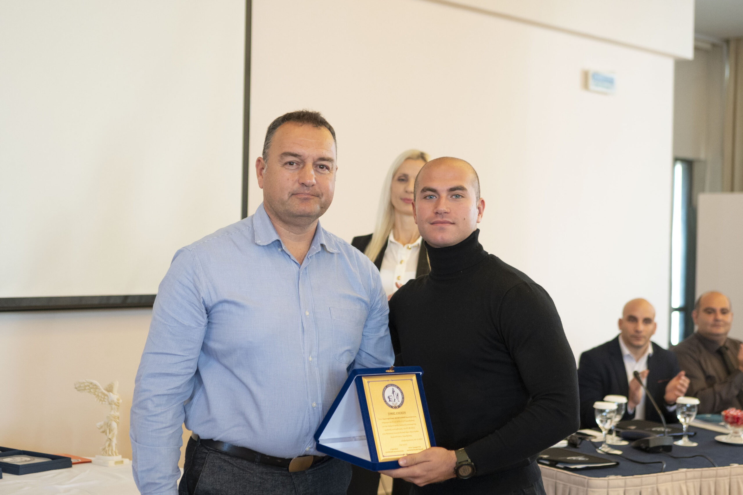 Την πλακέτα παρέλαβε ο κ. Δεληγιάννης Κωνσταντίνος από τον αντιπρόσωπο της Ε.Π.Λ.Σ. Θράκης στην Π.Ο.Ε.Π.Λ.Σ κ. Γεωργαντά Μιχαήλ.