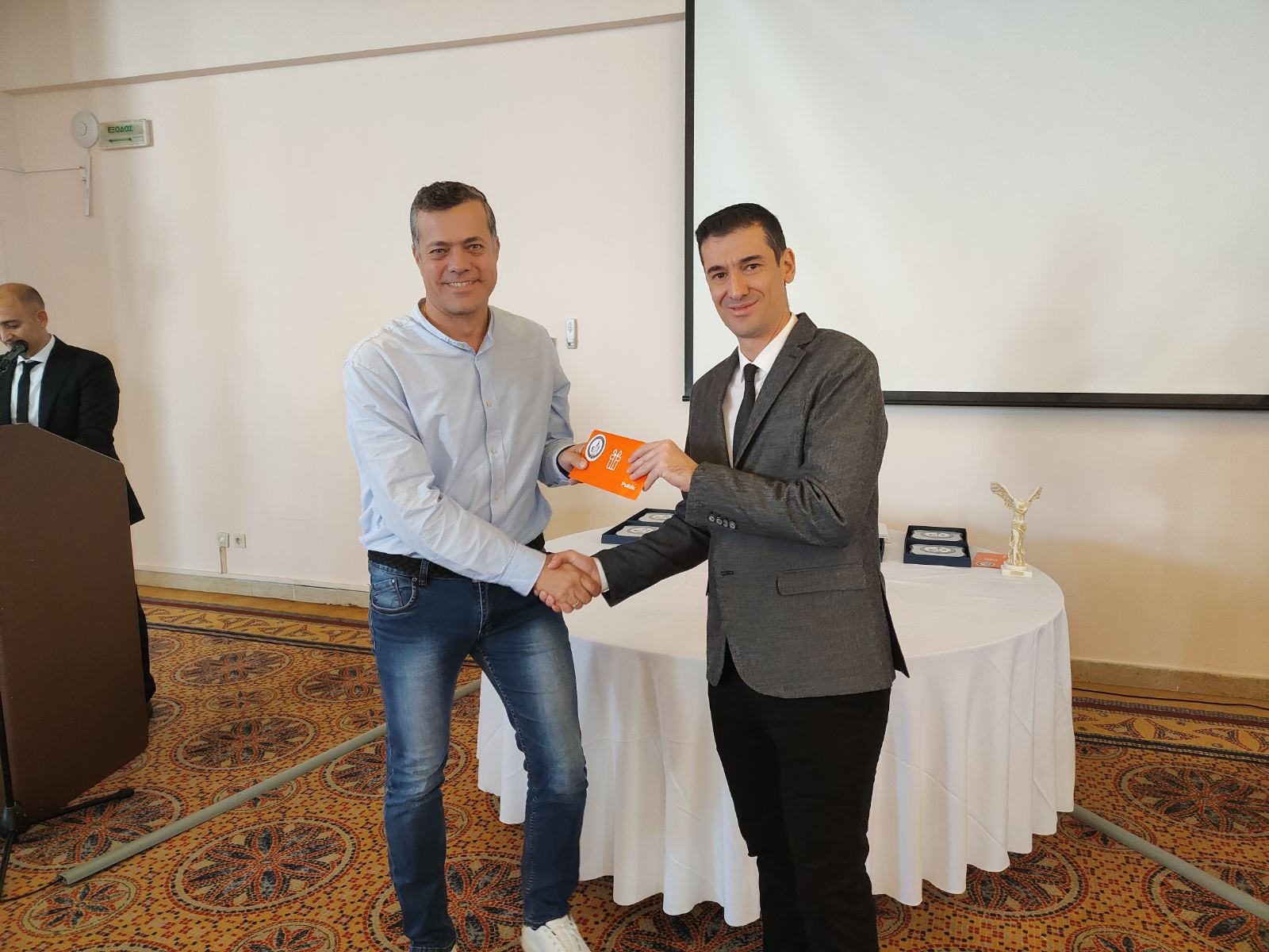 Την πλακέτα παρέλαβε ο κ. Βαρδάκας Δημήτριος από τον Ταμία της Ε.Π.Λ.Σ. Θράκης κ. Σαββουλίδη Γεώργιο.