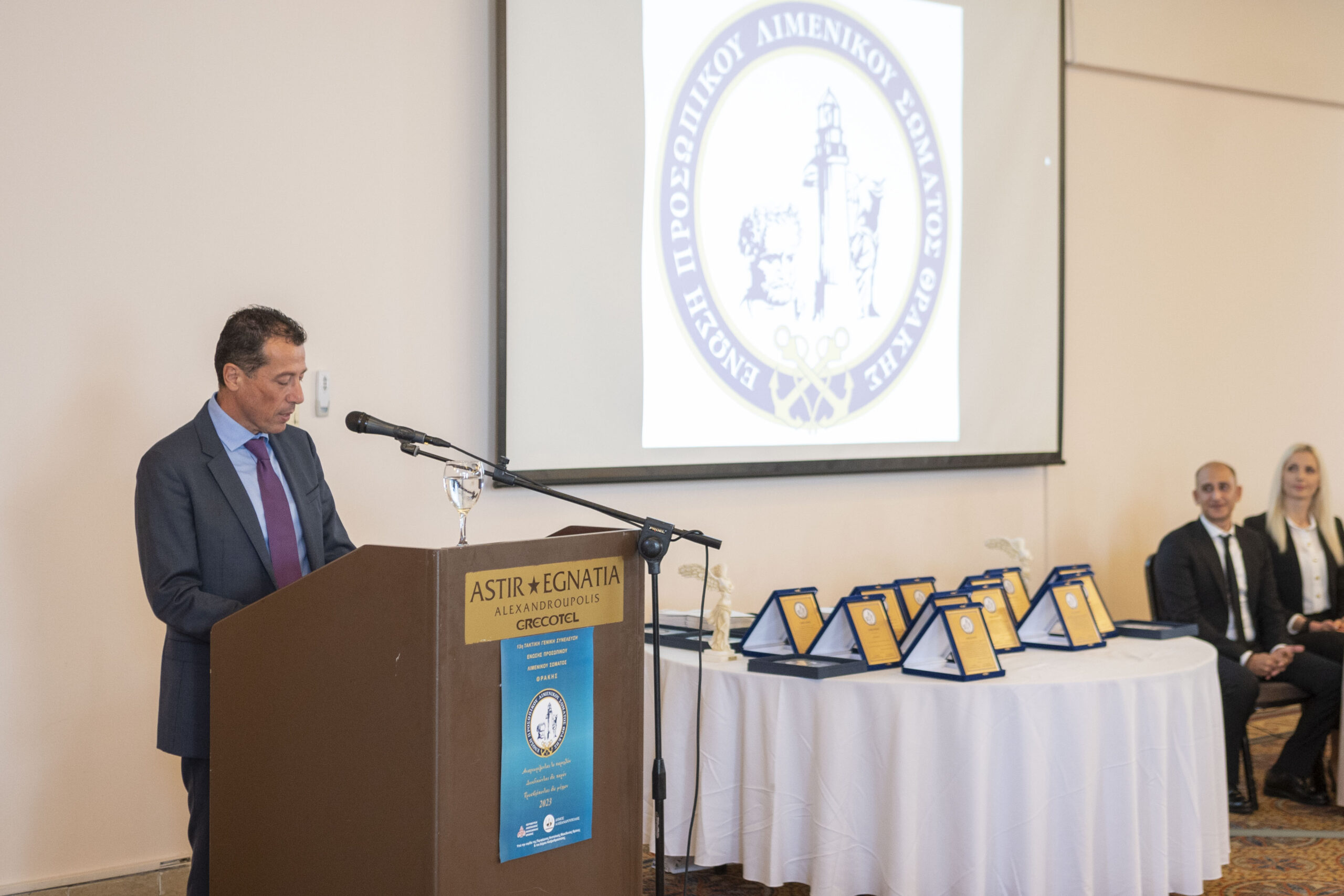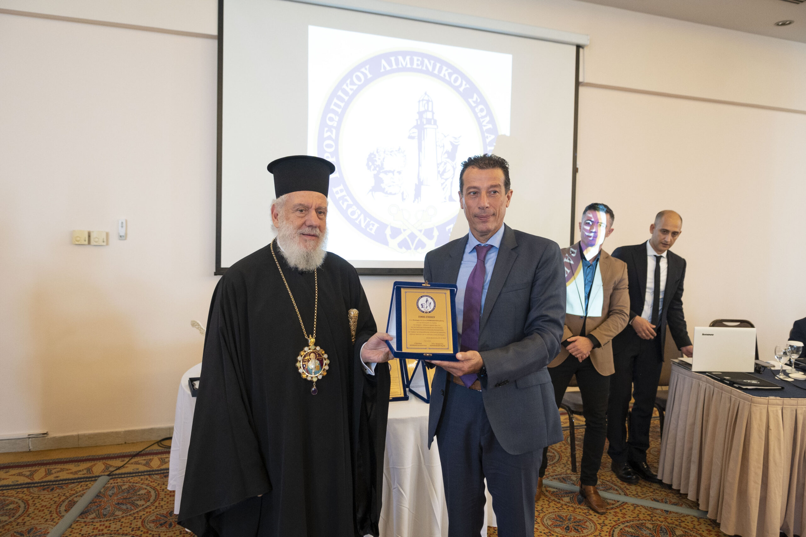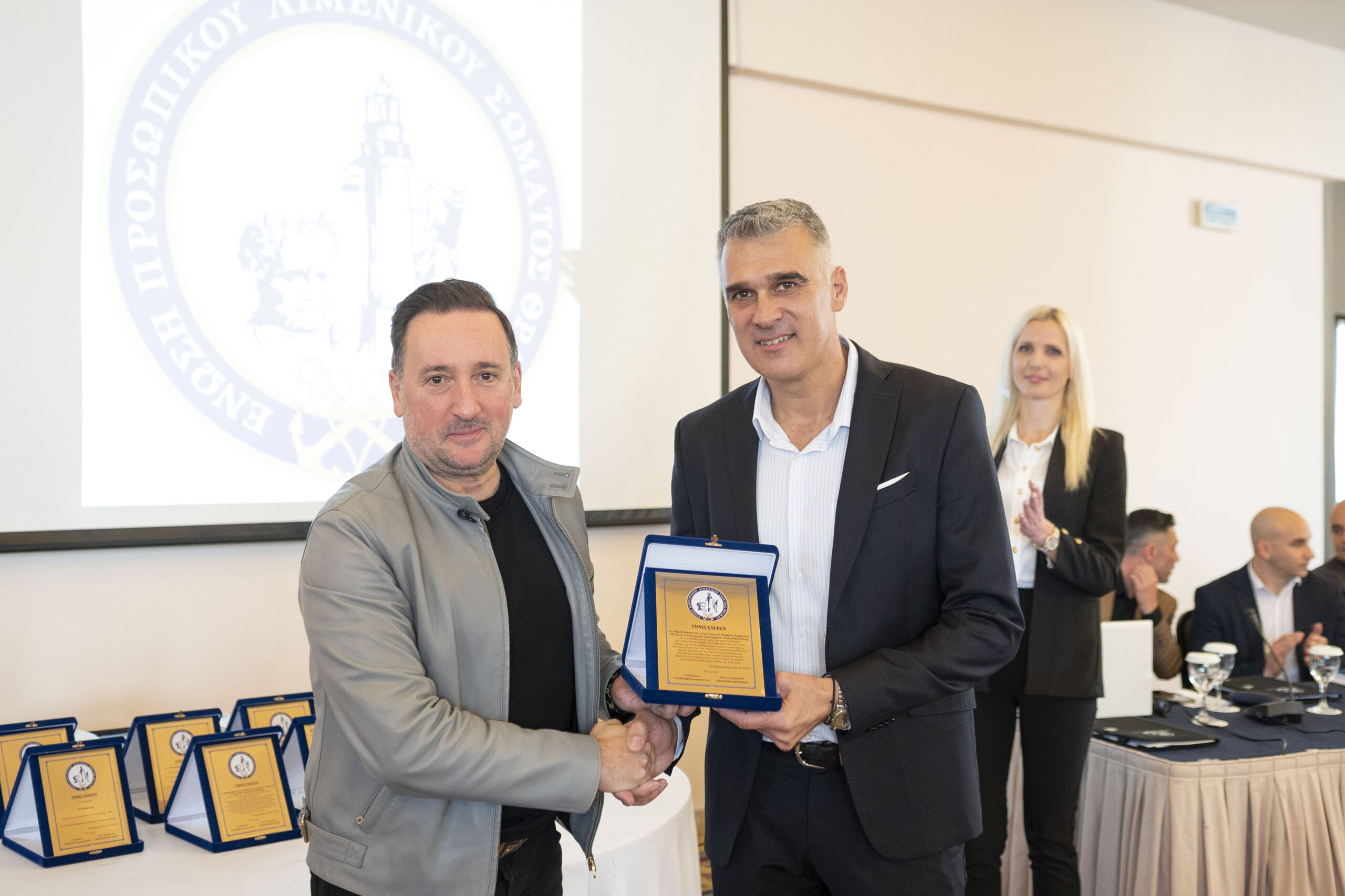 Την πλακέτα παρέλαβε αντ’ αυτού ο Κεντρικός Λιμενάρχης Αλεξανδρουπόλεως Αντιπλοίαρχος Λ.Σ Ιωάννου Σάββας από τον Αντιπρόεδρο της Π.Ο.Ε.Π.Λ.Σ. κ. Σφακιανάκη Γεώργιο.