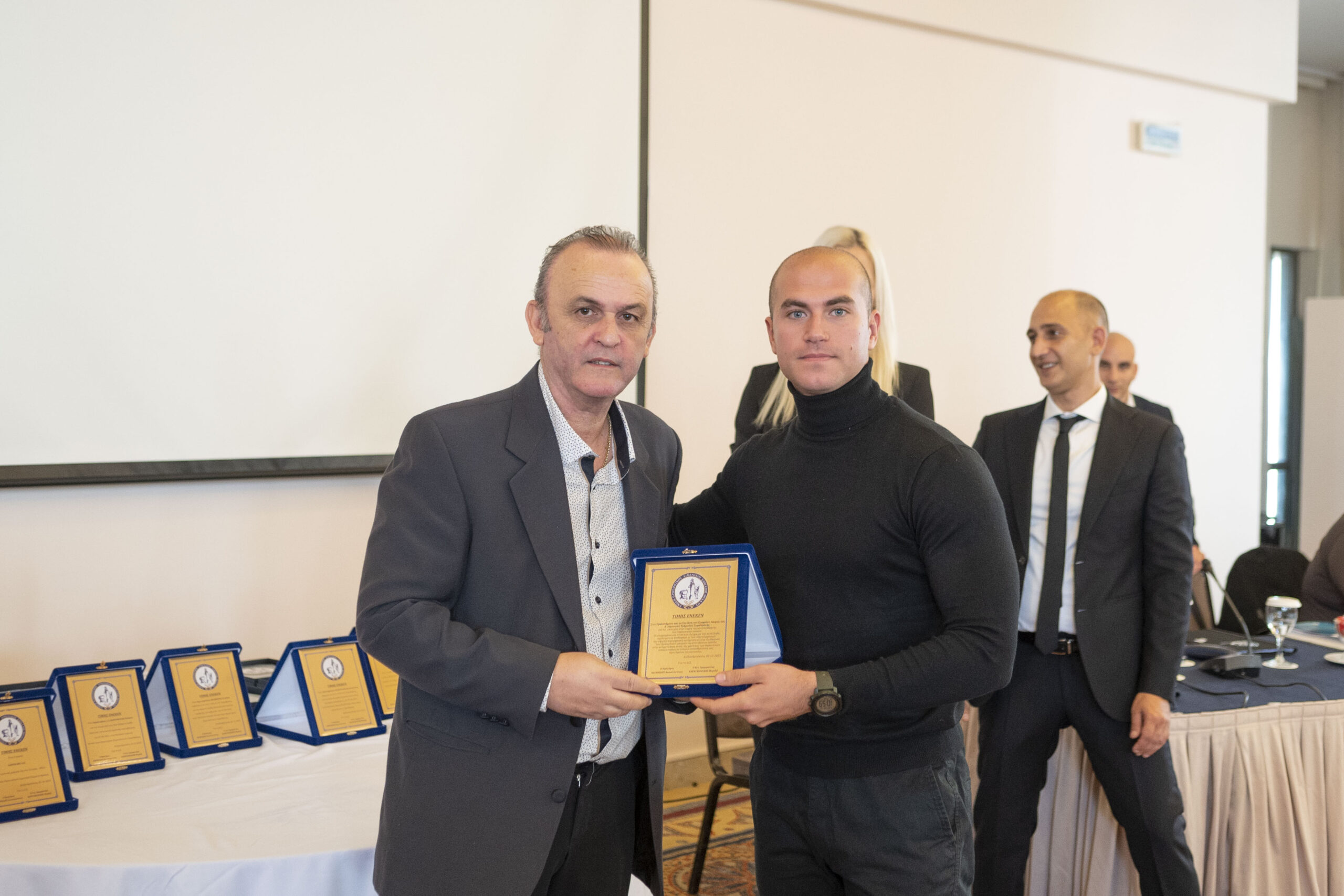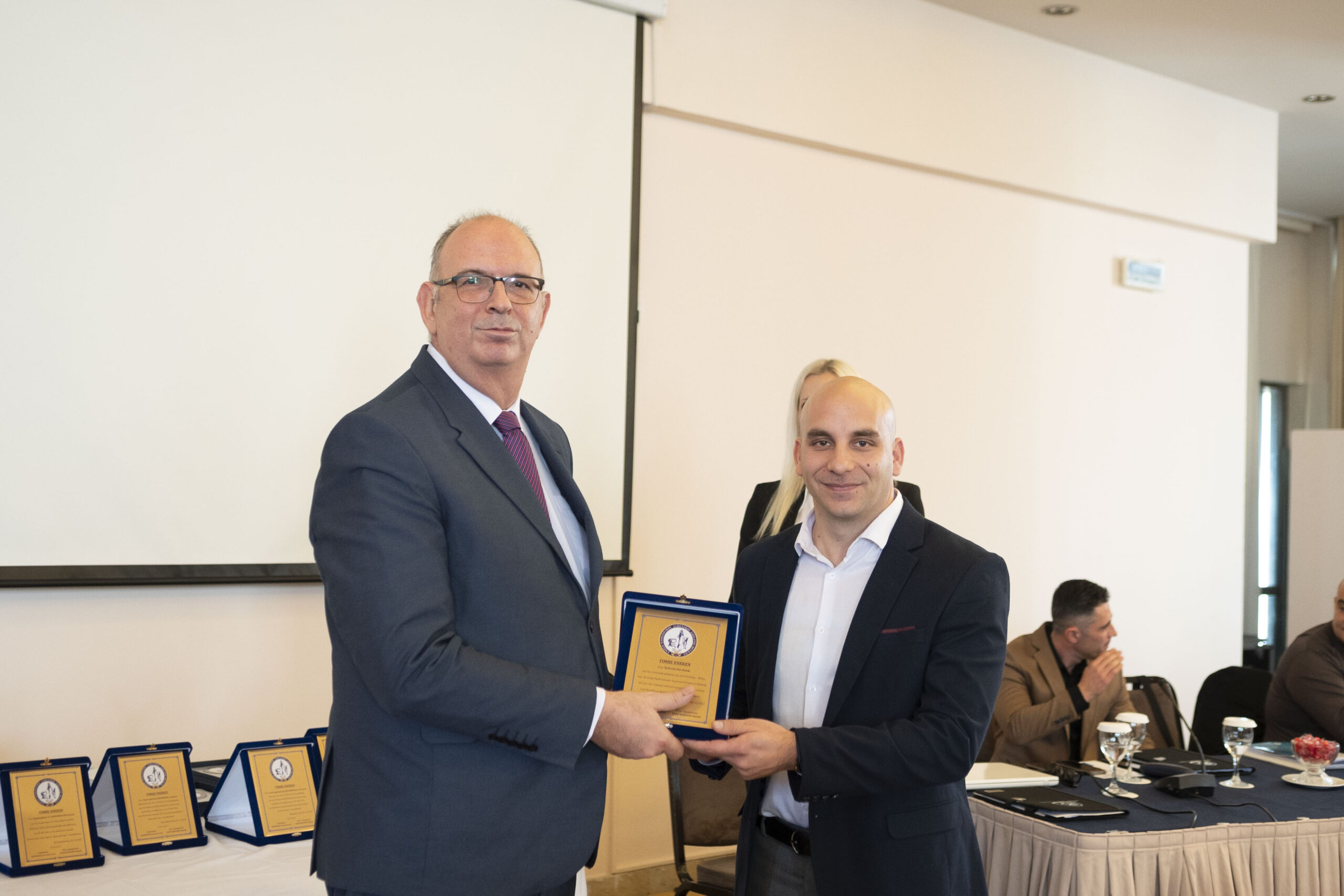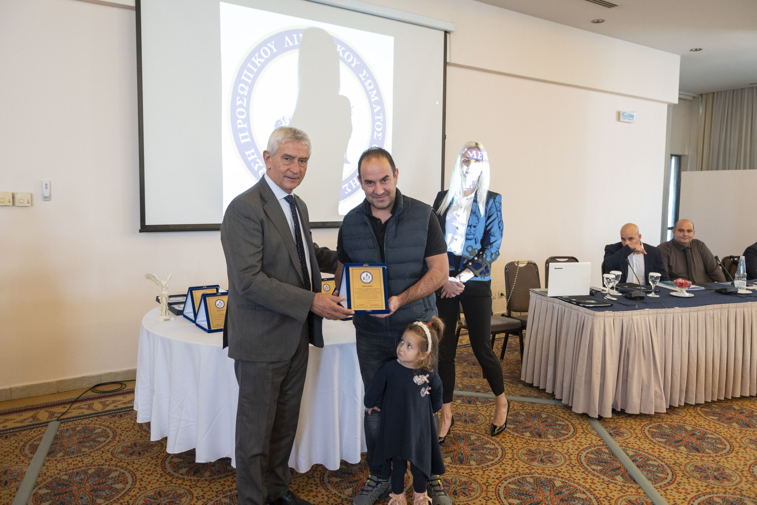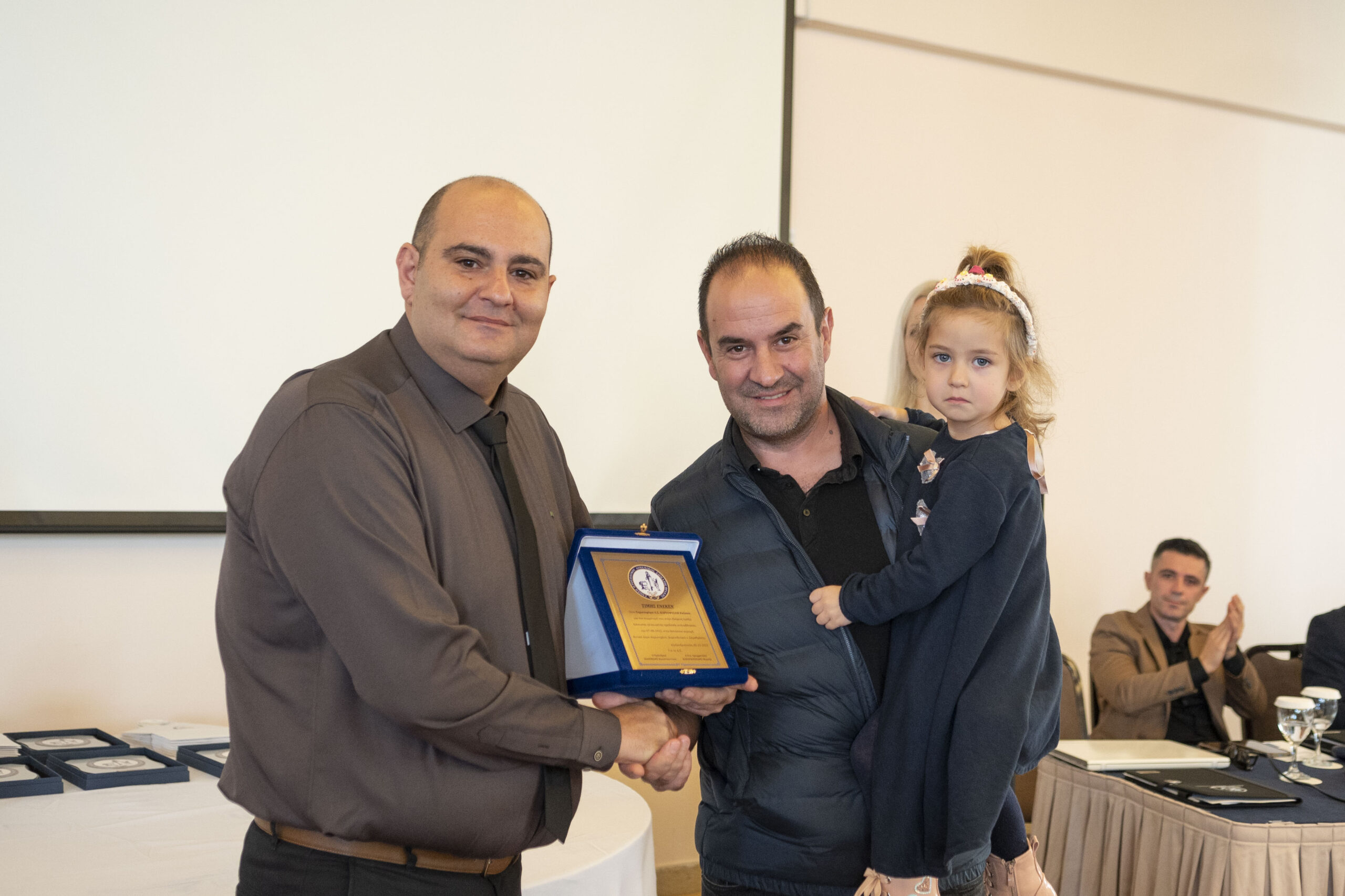 Την πλακέτα παρέλαβε ο κ. Δεληγιάννης Κωνσταντίνος Γεώργιος από τον Γεν. Γραμματέα της Π.Ο.Ε.Π.Λ.Σ. κ. Δροσόπουλο Αλέκο.