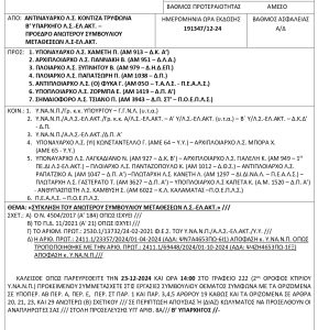 Σας ενημερώνουμε ότι τη Δευτέρα 23 Δεκεμβρίου 2024 και ώρα 14:00 συγκαλείται το Ανώτερο Συμβούλιο Μεταθέσεων Λ.Σ.-ΕΛ.ΑΚΤ. προς εξέταση έκτακτων μεταθέσεων: