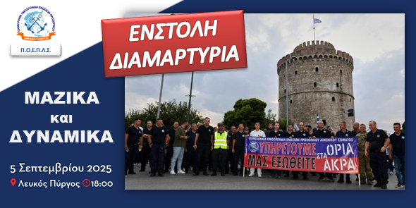 Η ΕΠΛΣ Κεντρικής Μακεδονίας, καλείται να ενισχύσει τη διαμαρτυρία μας, με σύσσωμο το Διοικητικό Συμβούλιο, τους εκλεγμένους Αντιπροσώπους στην ΠΟΕΠΛΣ και όσο το δυνατόν περισσότερους συναδέλφους-μέλη της, που υπηρετούν στις Λιμενικές Αρχές και υπηρεσίες της Ένωσης.
