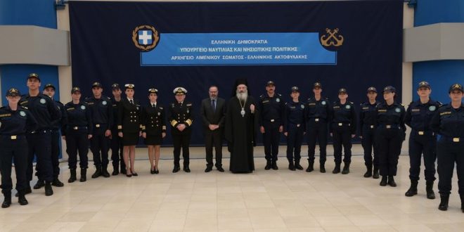 Τη σημαντική συνεισφορά και την υψηλή ευθύνη που φέρουν με την κατάταξή τους στις τάξεις του Λιμενικού Σώματος – Ελληνικής Ακτοφυλακής οι 14 νέοι Αξιωματικοί (απευθείας κατάταξης ειδικότητας Υγειονομικού – Νομικού και Οικονομικού) για την ασφαλή και εύρυθμη λειτουργία του Σώματος, επισήμανε ο Γενικός Γραμματέας Ναυτιλίας και Λιμένων, Ευάγγελος Κυριαζόπουλος, στον χαιρετισμό του κατά τη διάρκεια της τελετής της ορκωμοσίας τους. Η τελετή πραγματοποιήθηκε σήμερα στο κτίριο του Υπουργείου Ναυτιλίας και Νησιωτικής Πολιτικής, χοροστατούντος του Θεοφιλέστατου Επισκόπου Αχελώου κ.κ. Νήφωνος, ως εκπροσώπου του Σεβασμιότατου Μητροπολίτη Πειραιά και Φαλήρου, κ.κ. Σεραφείμ.