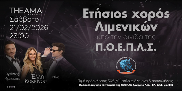 Το Σάββατο 21 Φεβρουαρίου η ΠΟΕΠΛΣ σας περιμένει στον Ετήσιο Χορό των Λιμενικών, που θα πραγματοποιηθεί στο κέντρο «THEAMA».