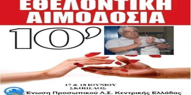 Σε συνεργασία με το Γ.Ν.Ν Βολου η Ένωση Προσωπικού Λ.Σ Κεντρικής Ελλάδος ολοκληρώνει τον κύκλο εθελοντική αιμοδοσίας στις Β.Σποραδες την Τρίτη 17 και Τετάρτη 18 Iουνίου .