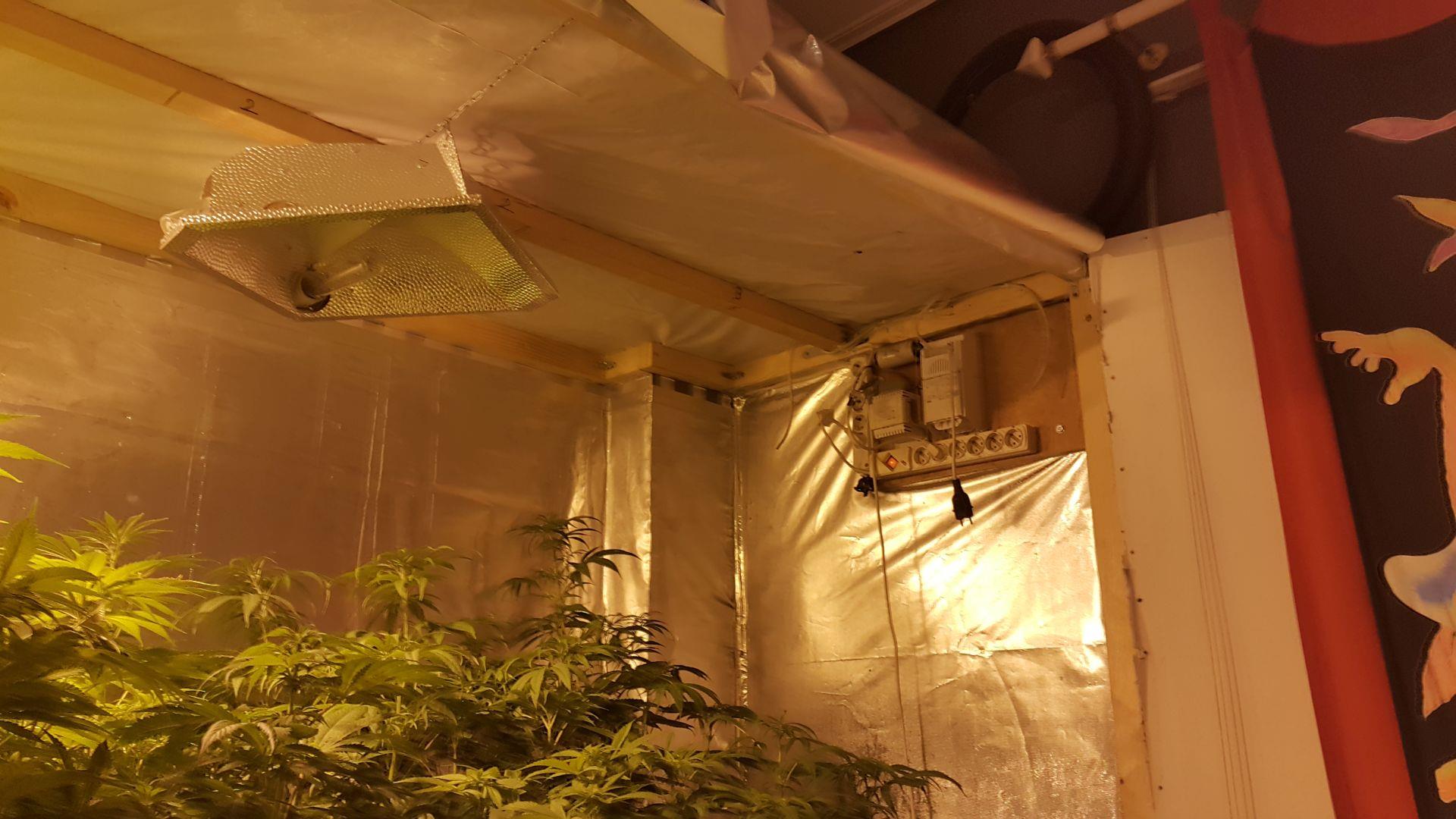 • μία (01) ντουλάπα διαμορφωμένη σε πλήρως λειτουργική εγκατάσταση υδροπονικής καλλιέργειας εμπλουτισμένης κάνναβης (skunk) η οποία περιείχε τέσσερις (04) γλάστρες με δενδρύλλια κάνναβης με ύψος φυτών από 20 έως 36 εκατοστά και ένα (01) αυτοσχέδιο πλαίσιο (πάνελ) επώασης φυτών κάνναβης με 25 δενδρύλλια με μέσο όρο ύψους έως 10 εκατοστά.