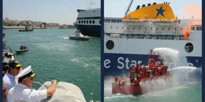 Κατόπιν πρωτοβουλίας του Υπουργού Ναυτιλίας και Αιγαίου, Μιλτιάδη Βαρβιτσιώτη, πραγματοποιήθηκε σήμερα με απόλυτη επιτυχία στο λιμάνι του Πειραιά άσκηση ετοιμότητας για την αντιμετώπιση περιστατικού εκδήλωσης πυρκαγιάς εντός Ε/Γ-Ο/Γ πλοίου. Η επιχείρηση υλοποιήθηκε στο πλαίσιο οδηγιών του κου Βαρβιτσιώτη προς τα στελέχη του Λιμενικού Σώματος για συνεχείς ελέγχους σε όλα τα πλοία, προκειμένου να διασφαλιστεί η τήρηση των προβλεπόμενων μέτρων ασφαλείας για τους επιβάτες.