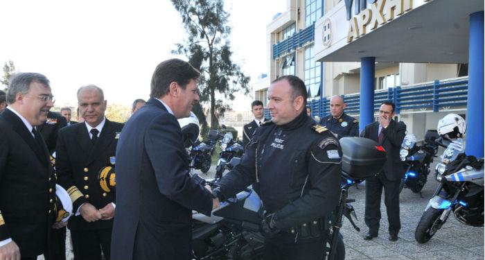 Παρουσία του Υπουργού Ναυτιλίας και Αιγαίου, Μιλτιάδη Βαρβιτσιώτη και του Αρχηγού του Λιμενικού Σώματος – Ελληνικής Ακτοφυλακής, Αντιναυάρχου Λ.Σ., Δημήτρη Μπαντιά, πραγματοποιήθηκε, στις 17-01-2014, τελετή παραλαβής τριάντα δύο περιπολικών μοτοσυκλετών στο χώρο του Υπουργείου Ναυτιλίας, στον Πειραιά.