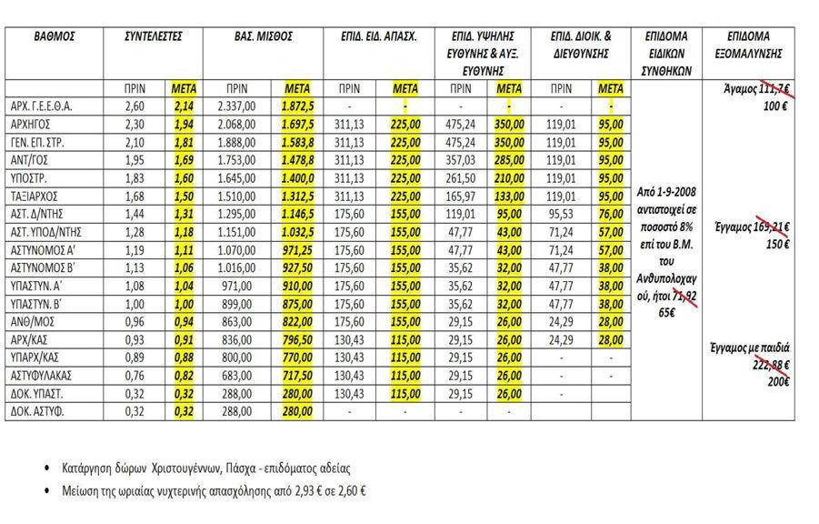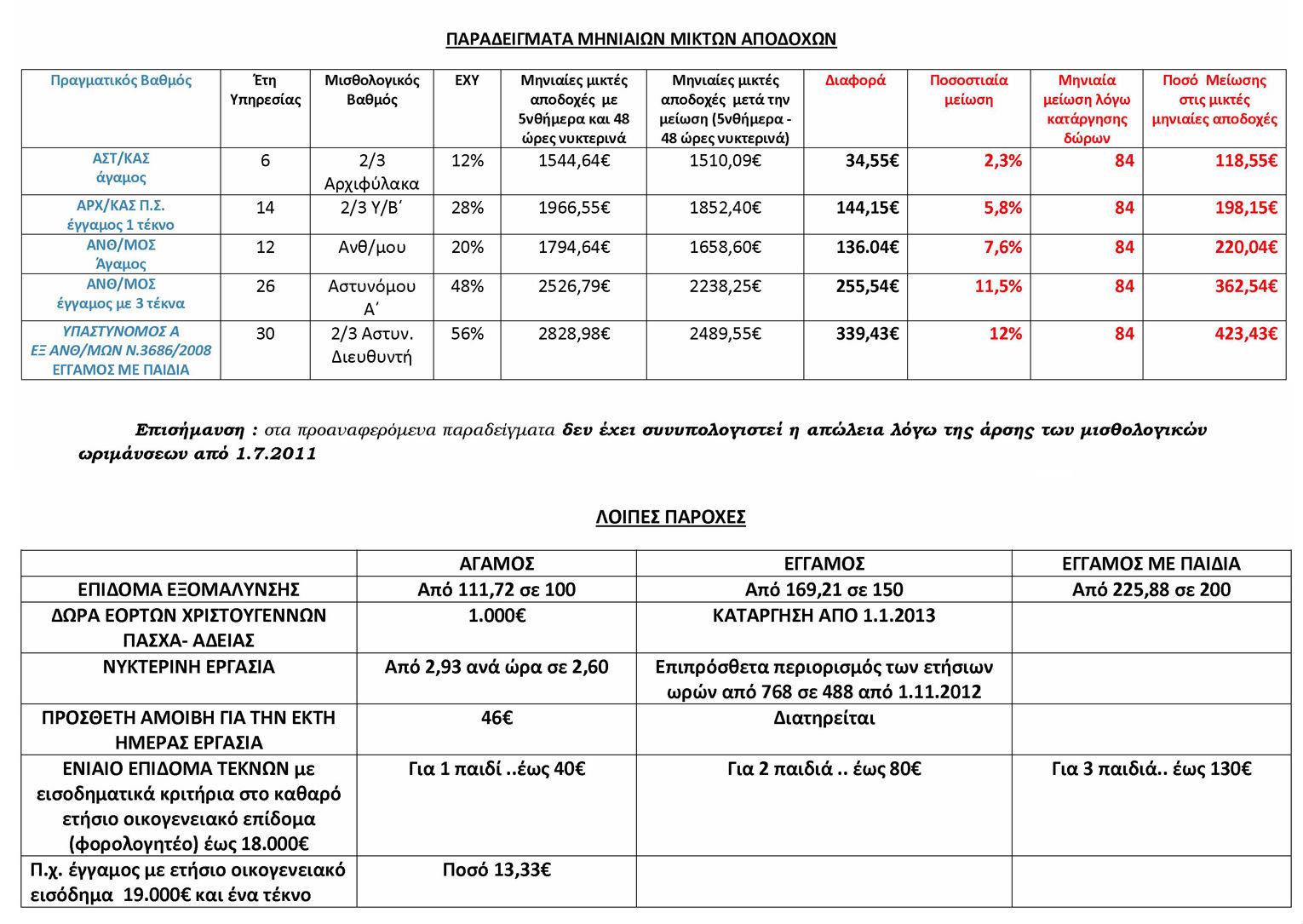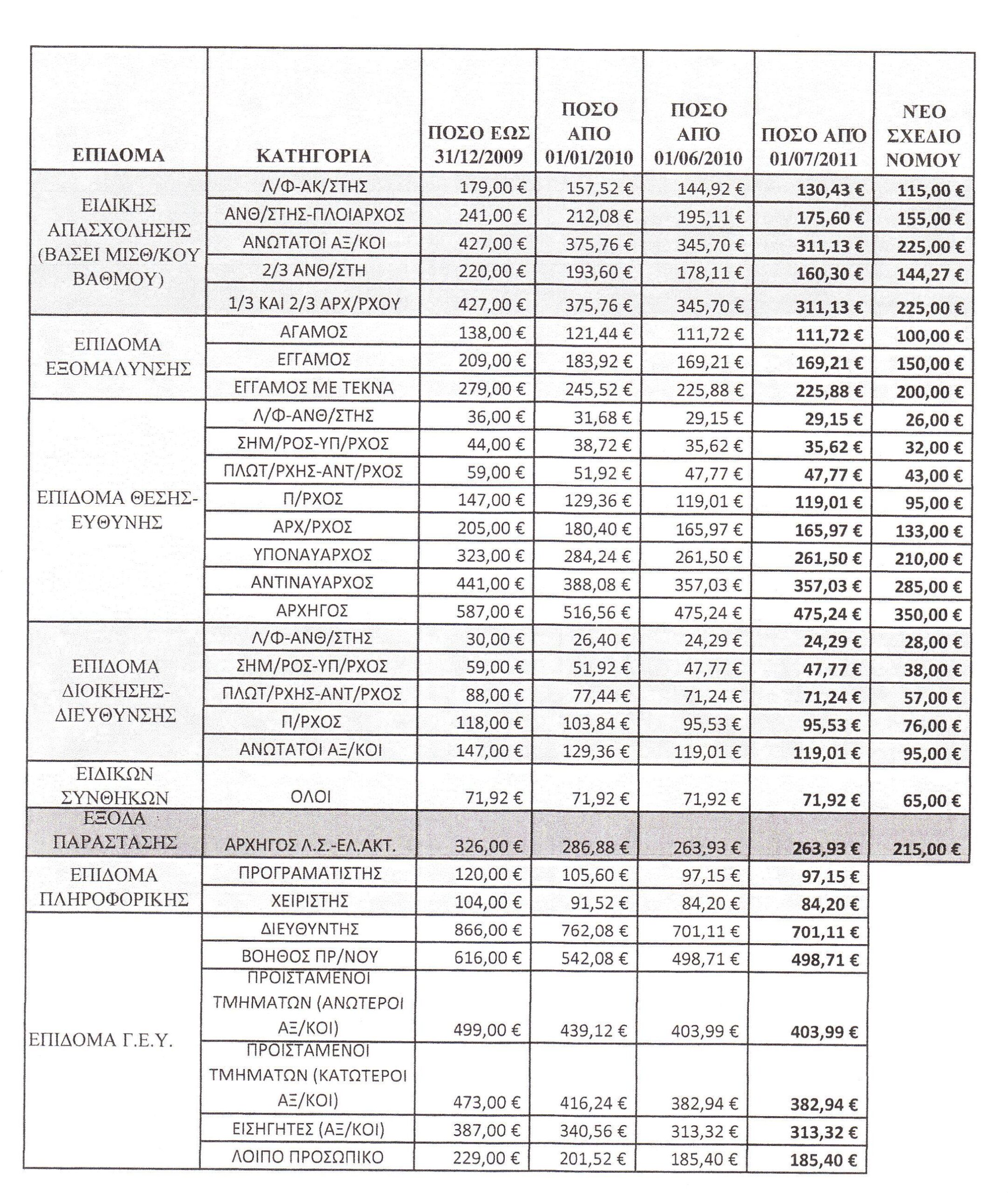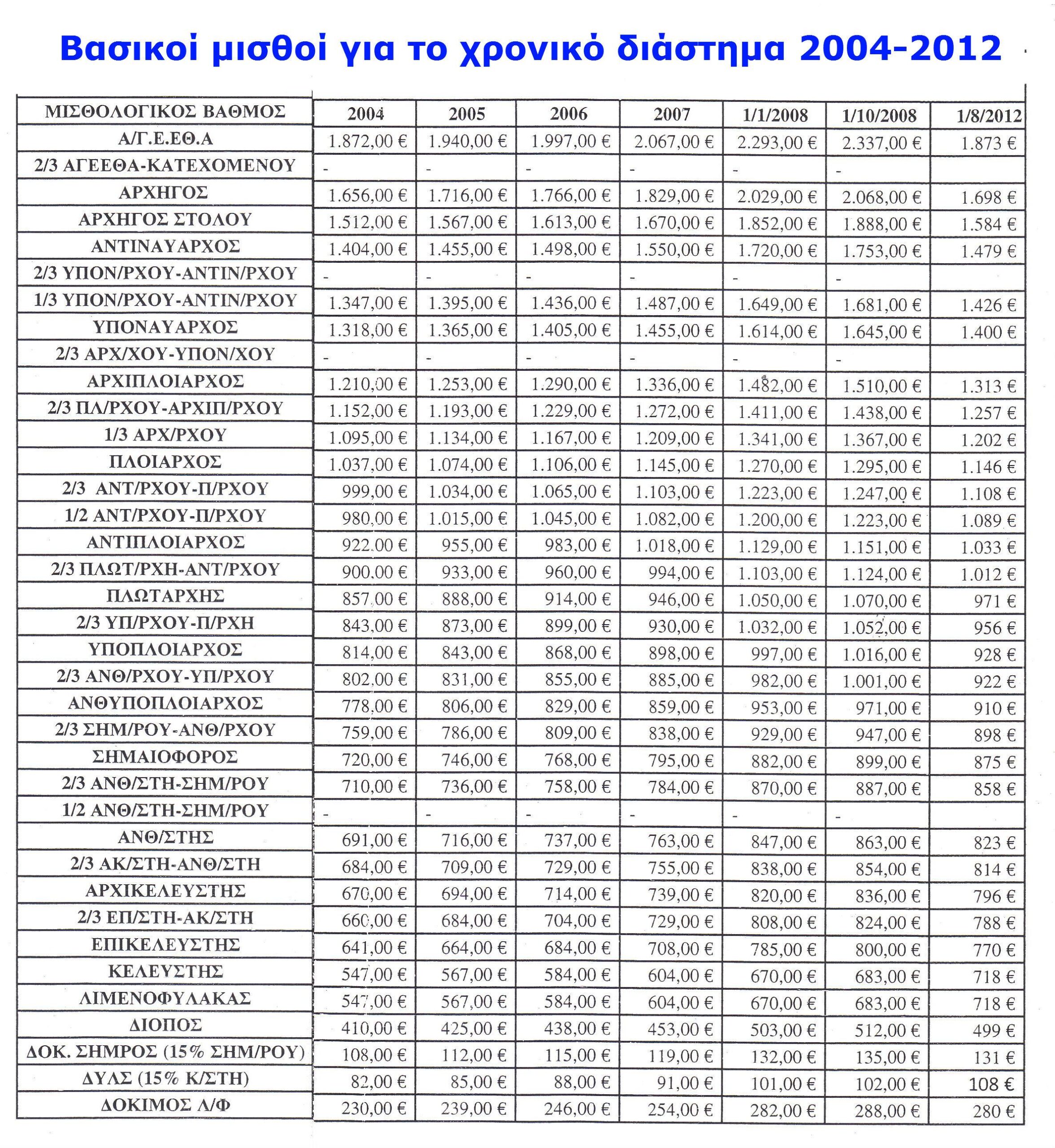 Συγκριτικοί πίνακες μισθών 2004-2012